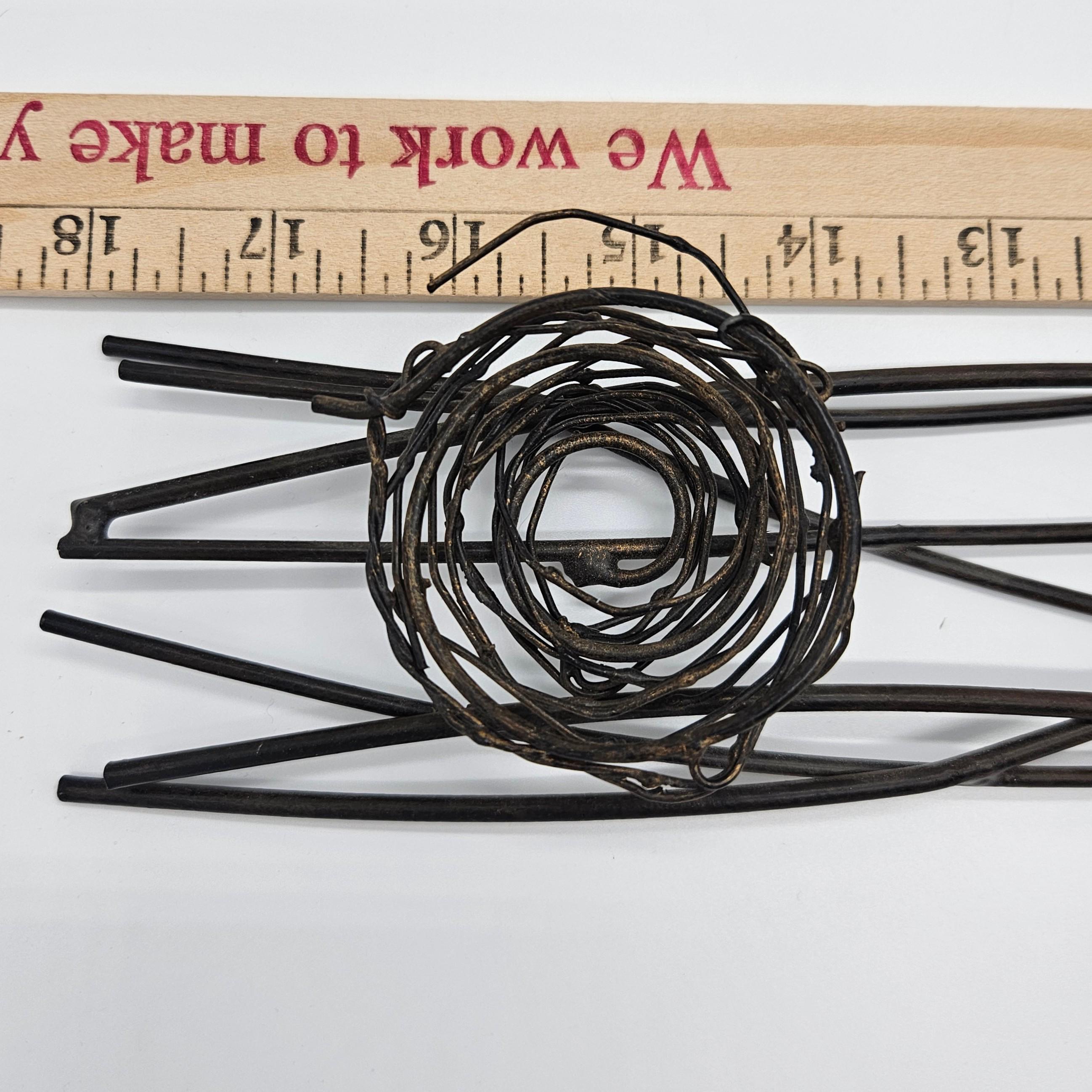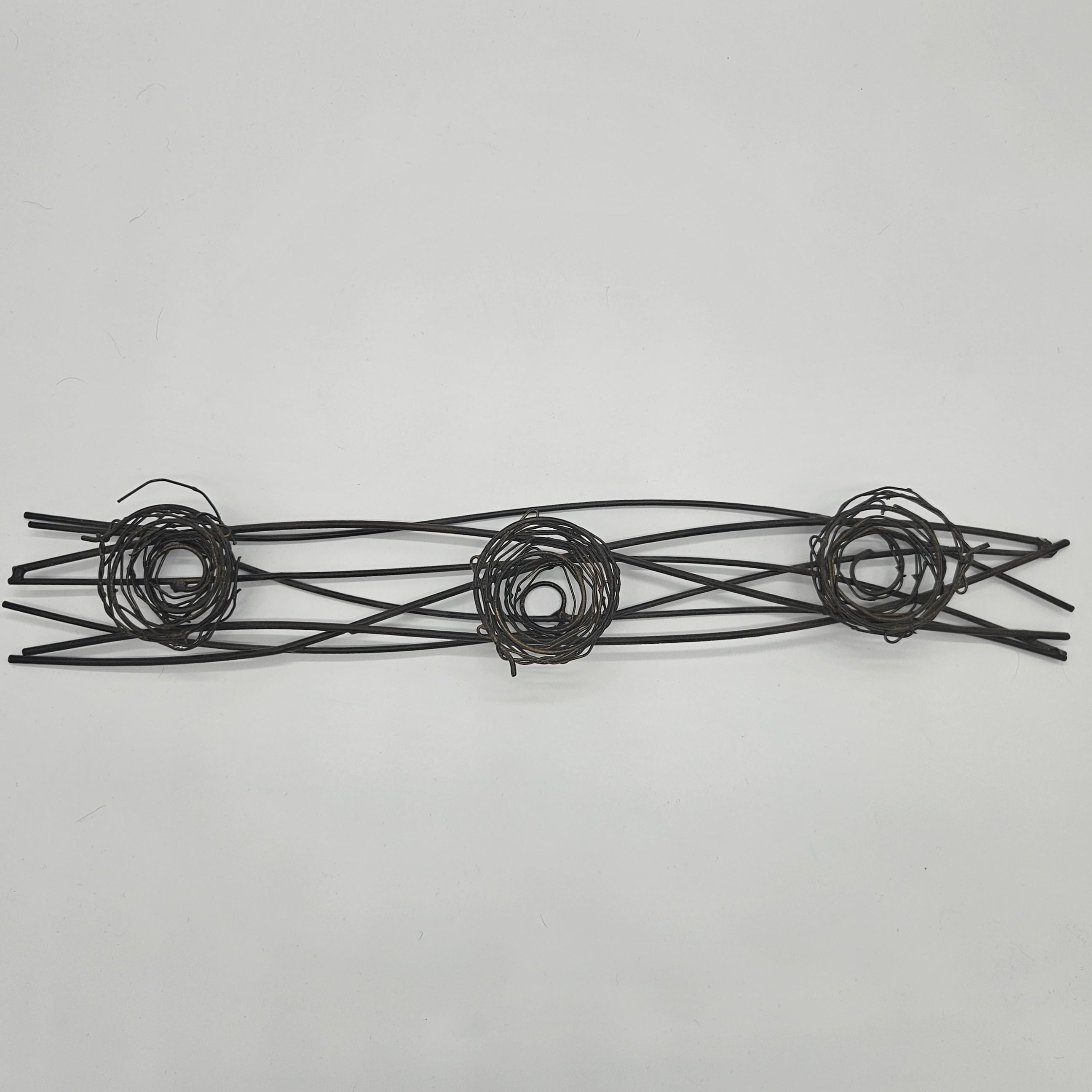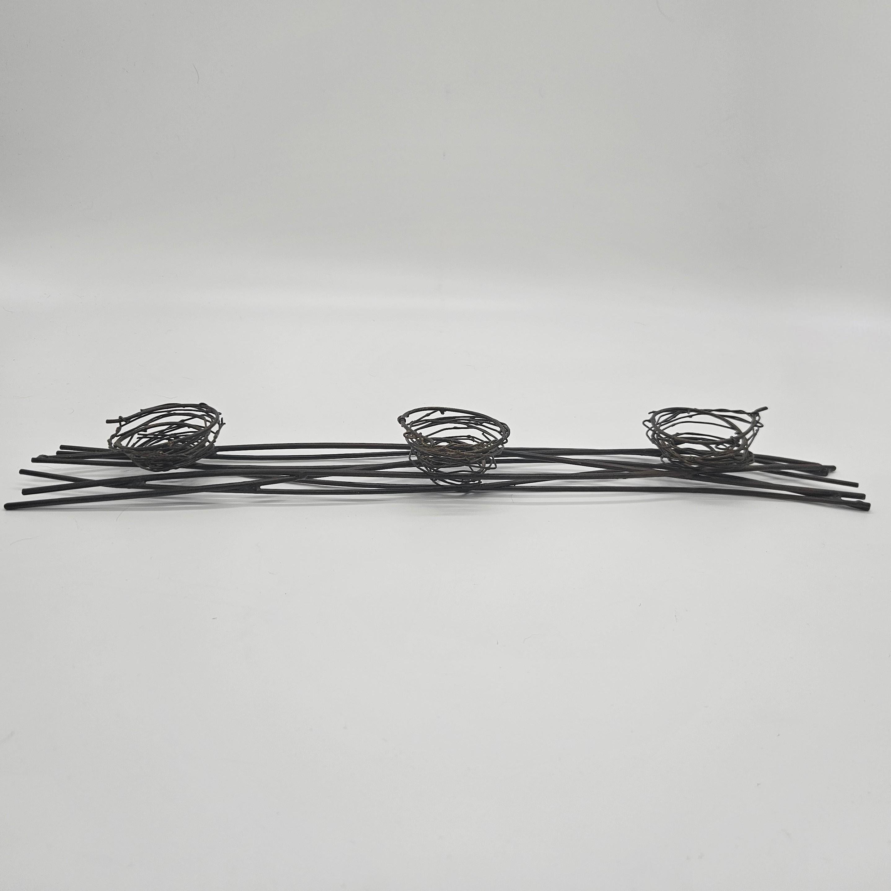 This simple handcrafted twisted wire nests holds three votive candles (not included). A rustic 1970s–80s vintage piece in good condition with charming patina.
