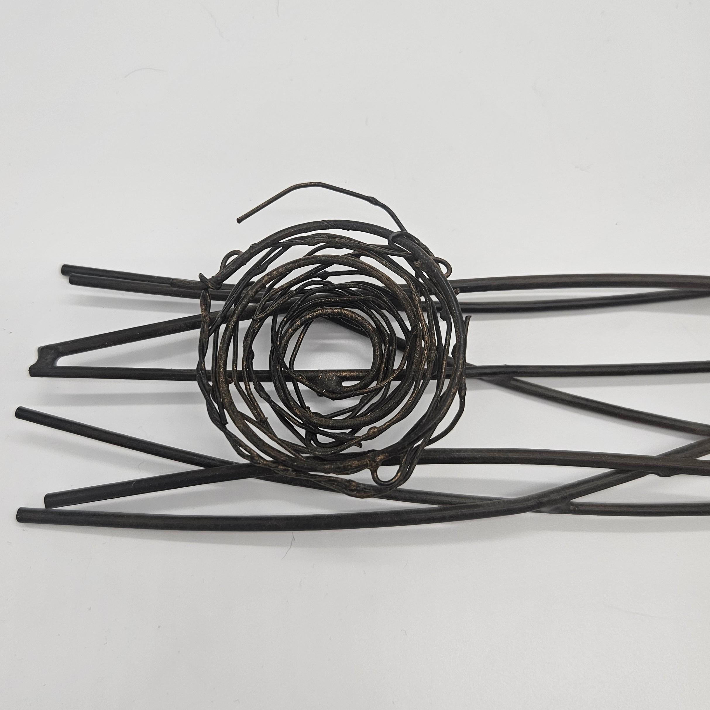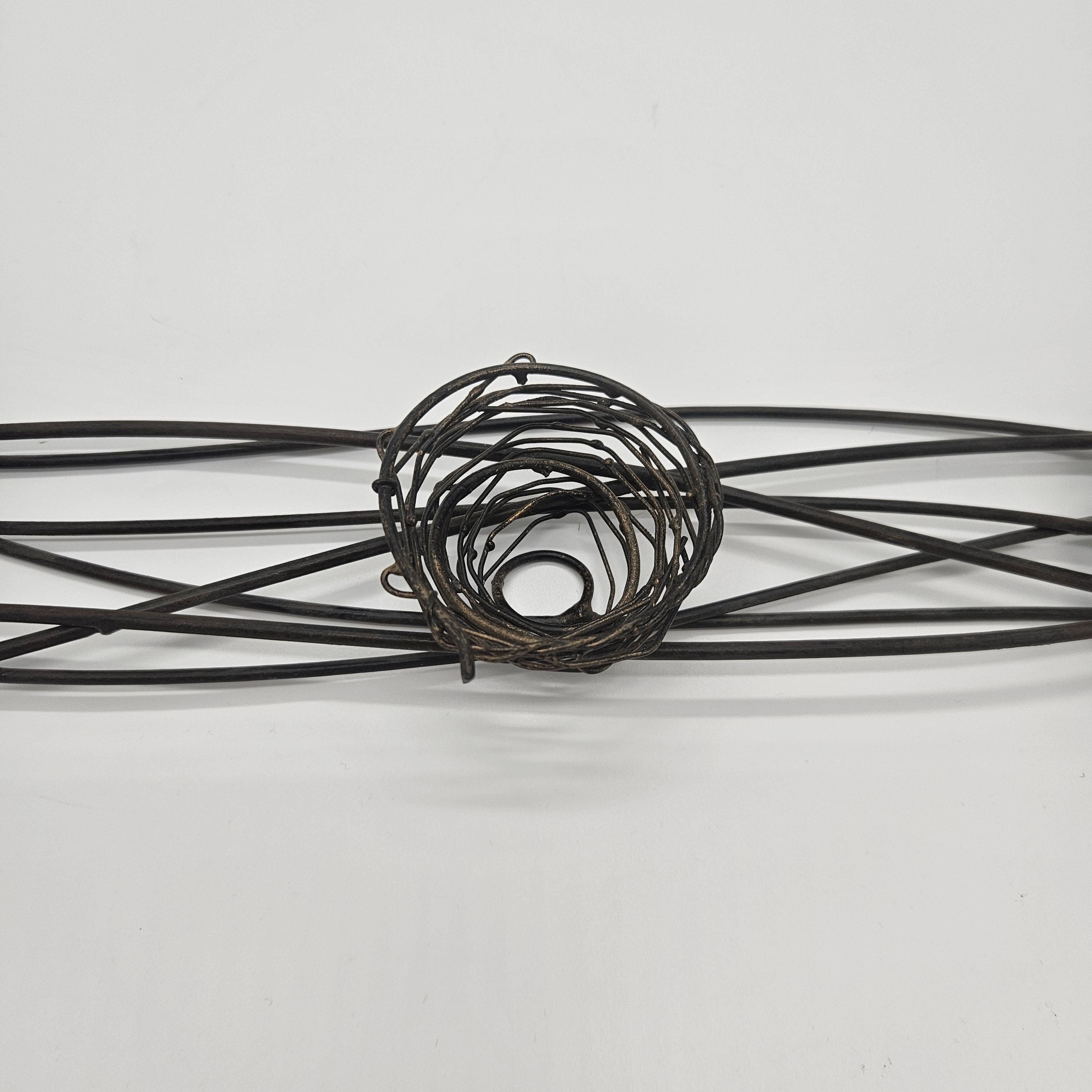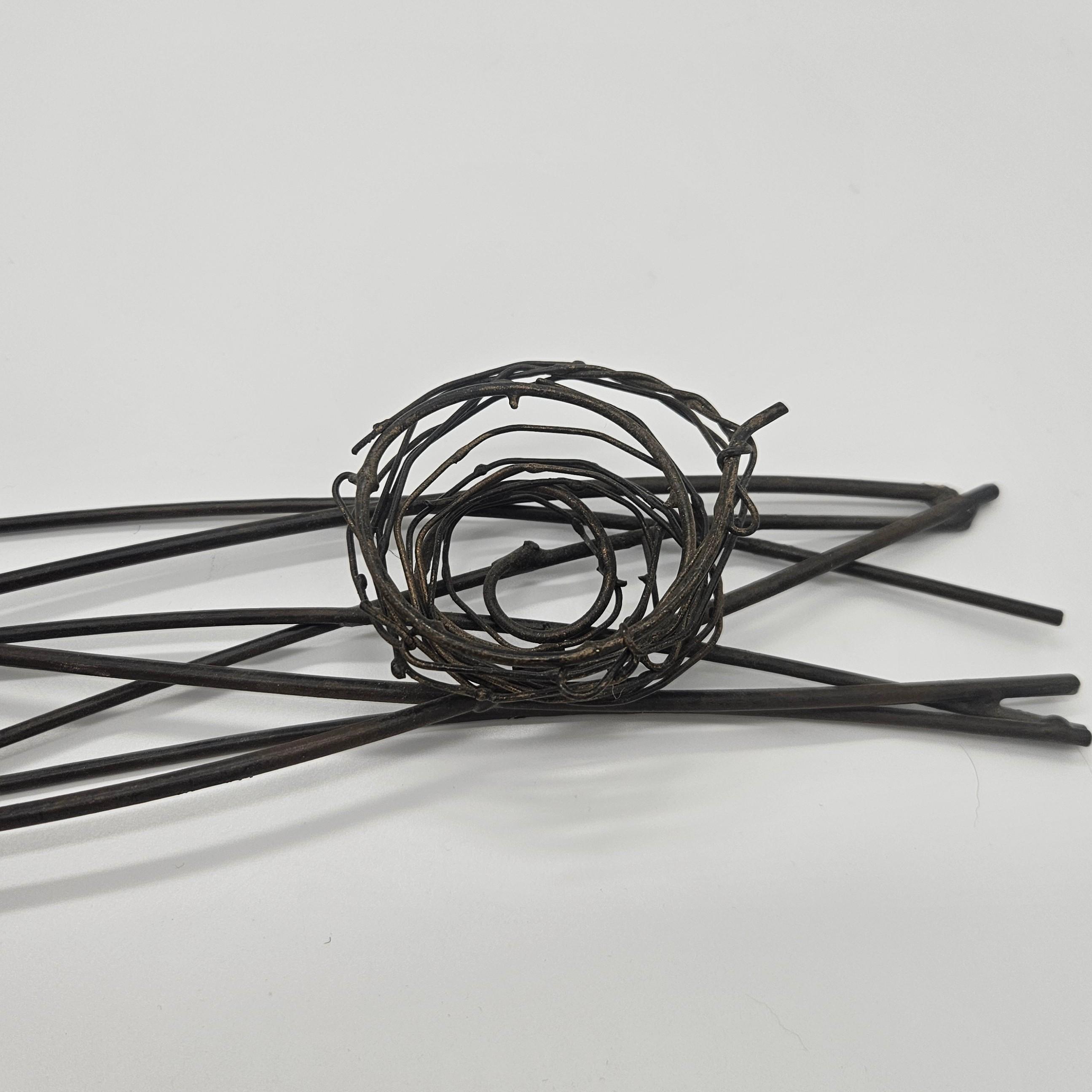 This simple handcrafted twisted wire nests holds three votive candles (not included). A rustic 1970s–80s vintage piece in good condition with charming patina.