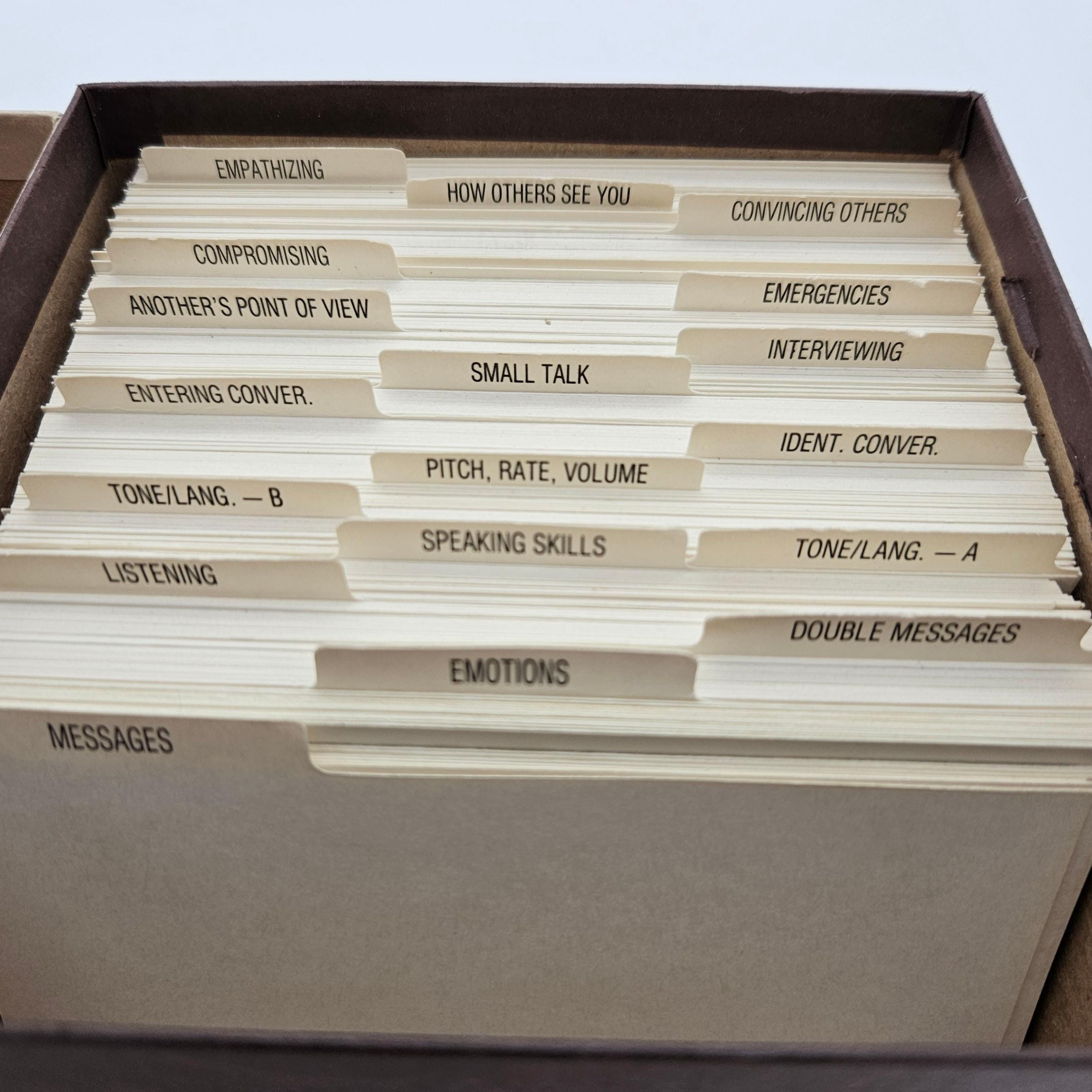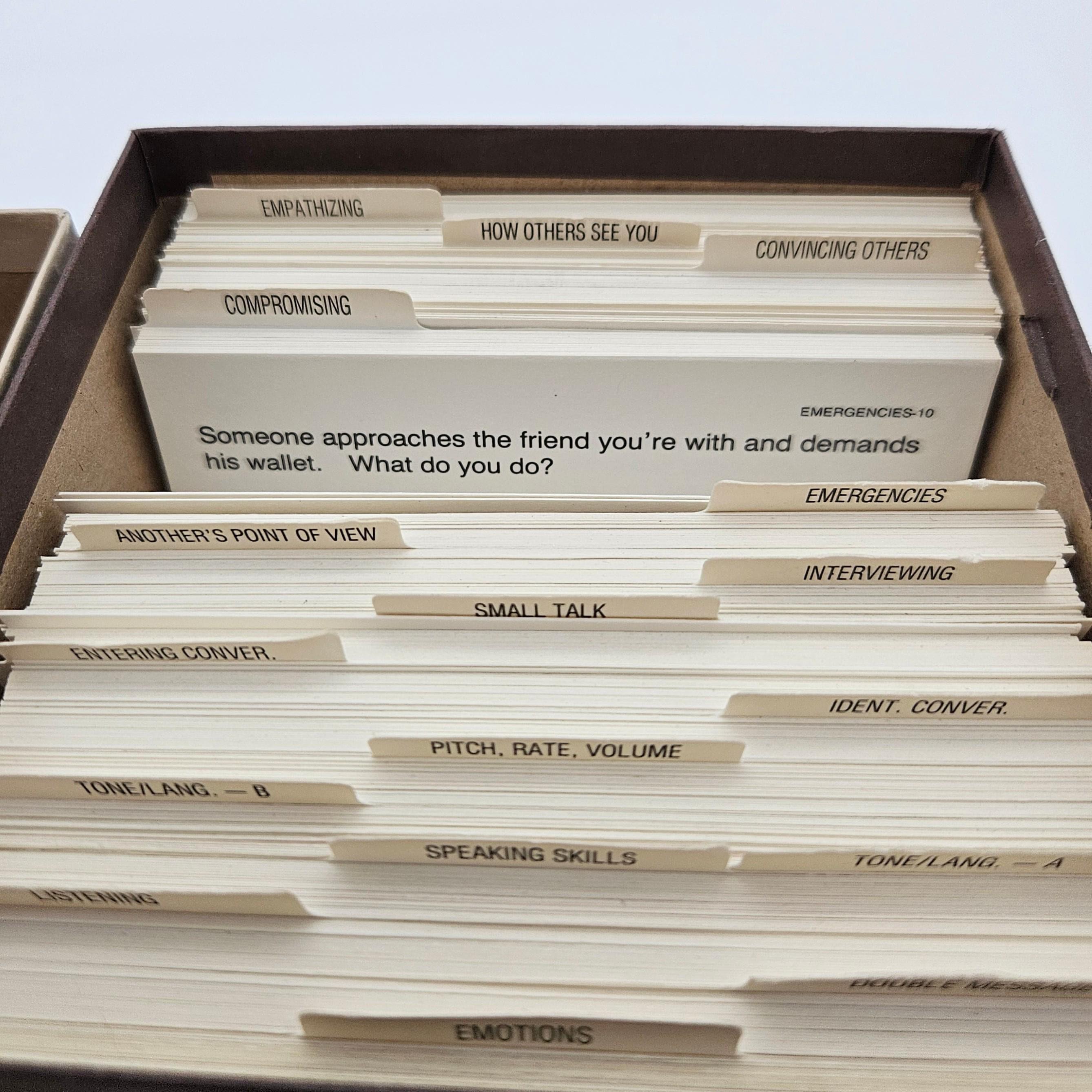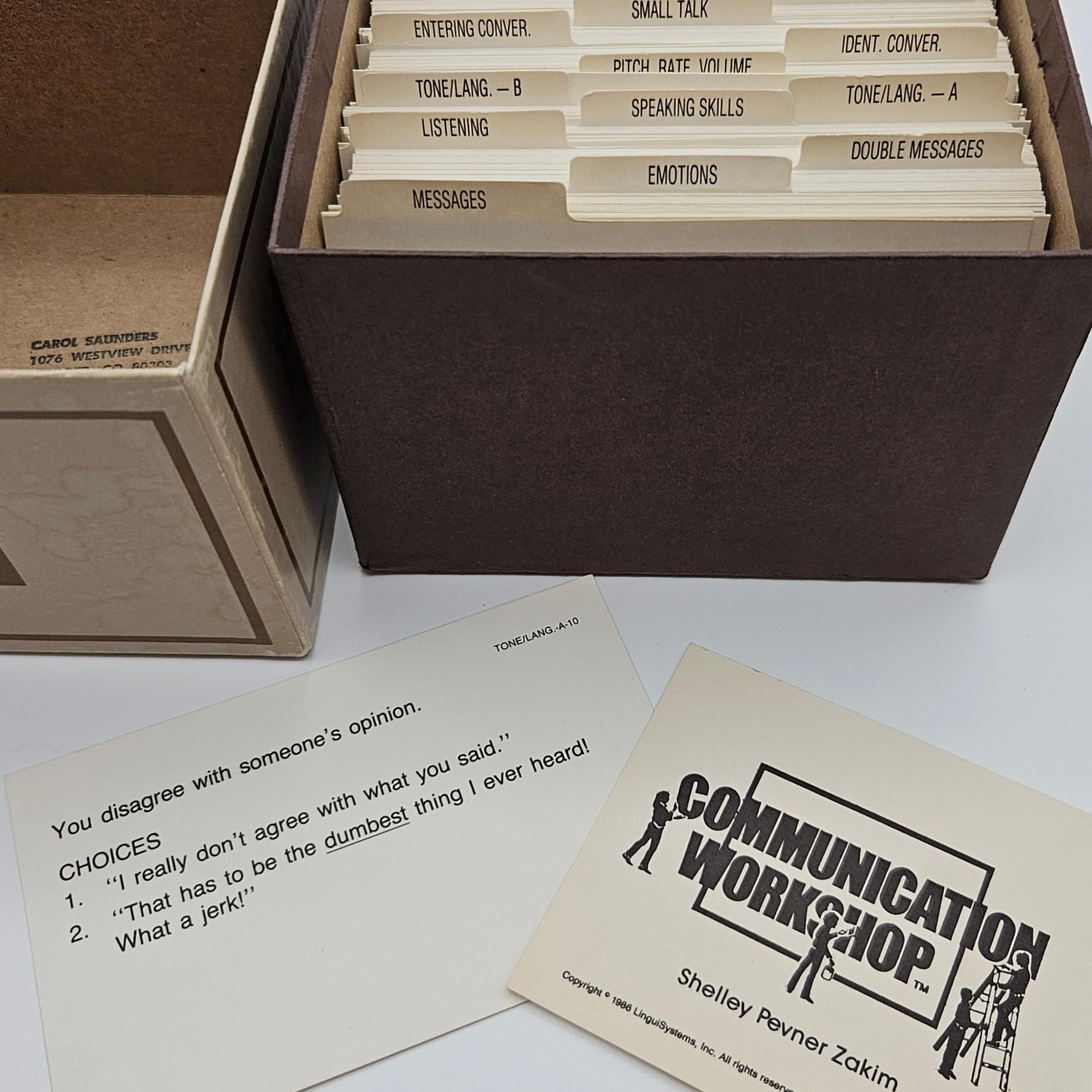 Step back into the world of classic communication skill building with this 1986 Communication Workshop card set by Shelley Pevner Zakim, published by LinguiSystems, Inc. Designed for educators and therapists, these scenario cards were created to enhance interaction, problem solving, and conversational skills.