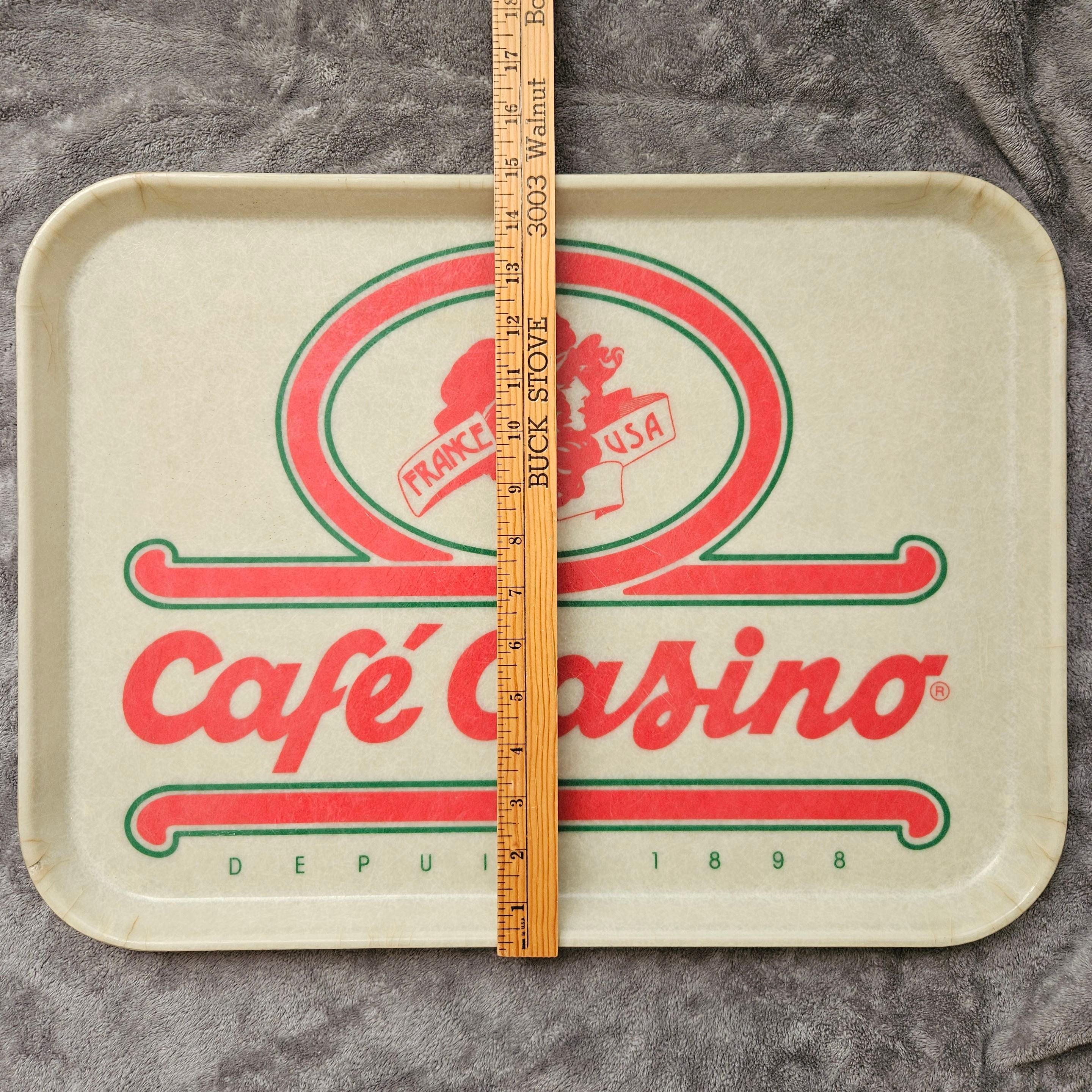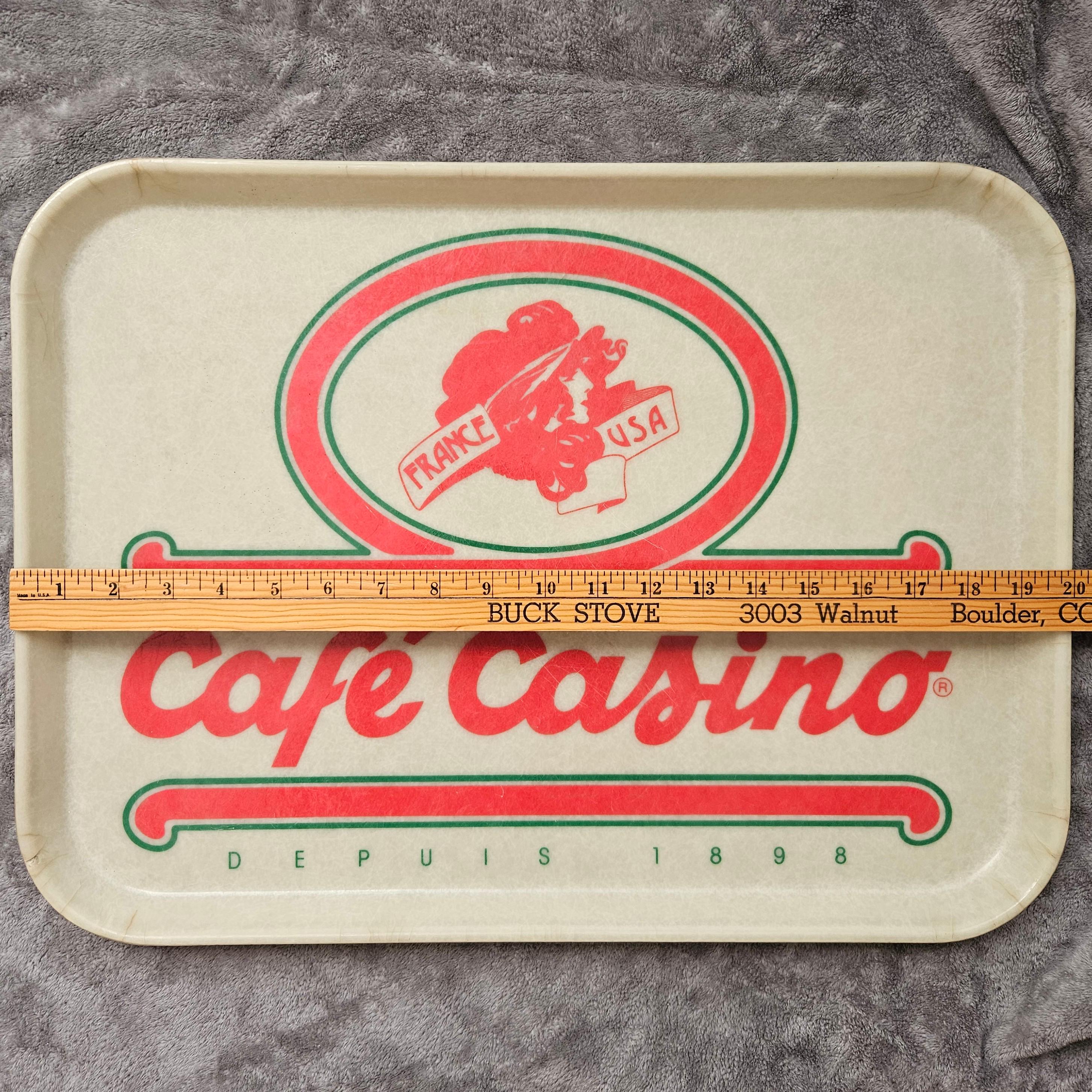 This rare vintage Café Casino buffet tray is a piece of 1980s restaurant history. Café Casino was a French-style cafeteria/buffet tied to Casino de France and operated U.S. locations in Seattle, Bellevue, Phoenix, and California (Santa Monica, Beverly Hills). The brand advertised itself as “France / USA – Depuis 1898,” highlighting its French heritage.