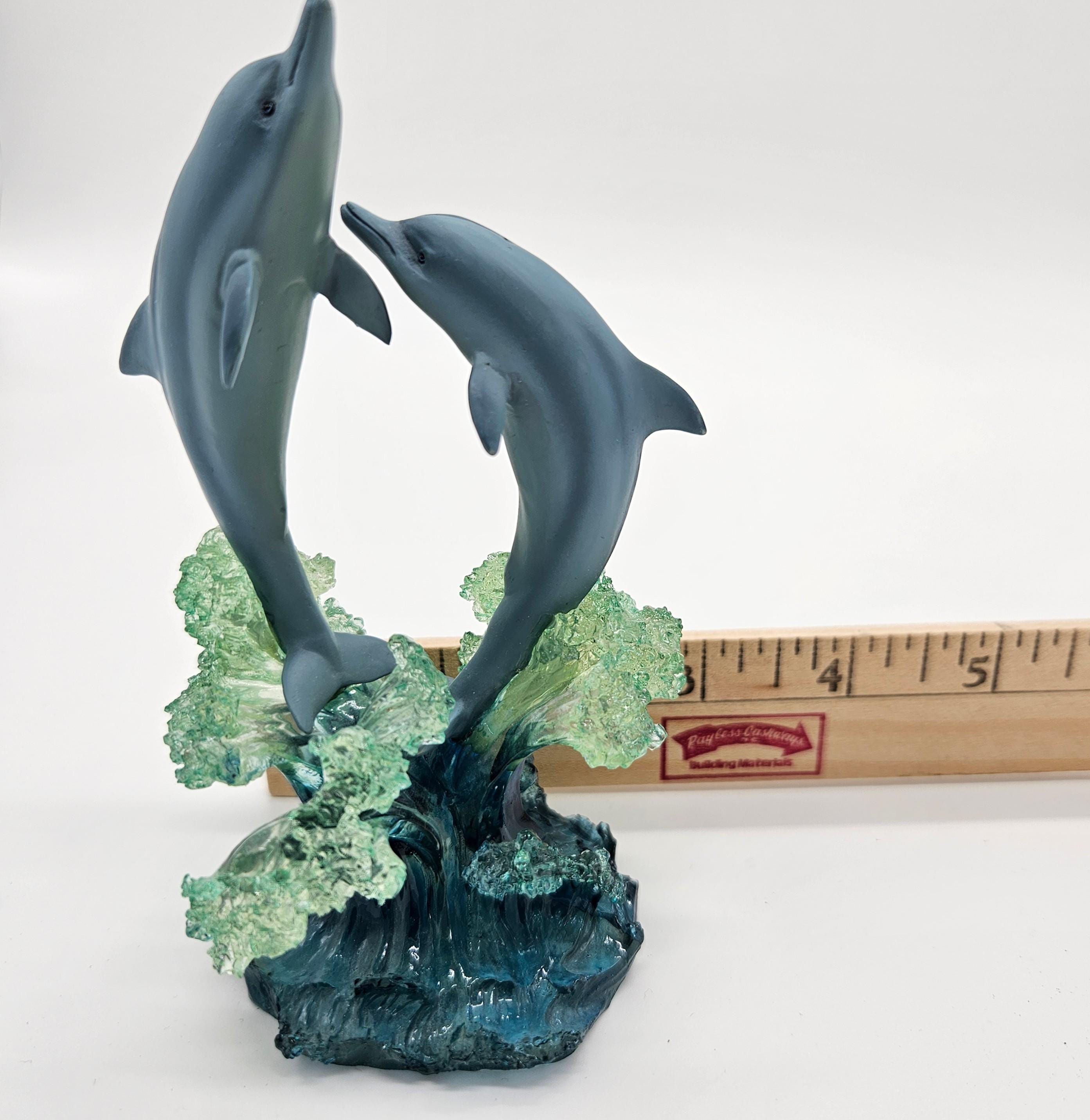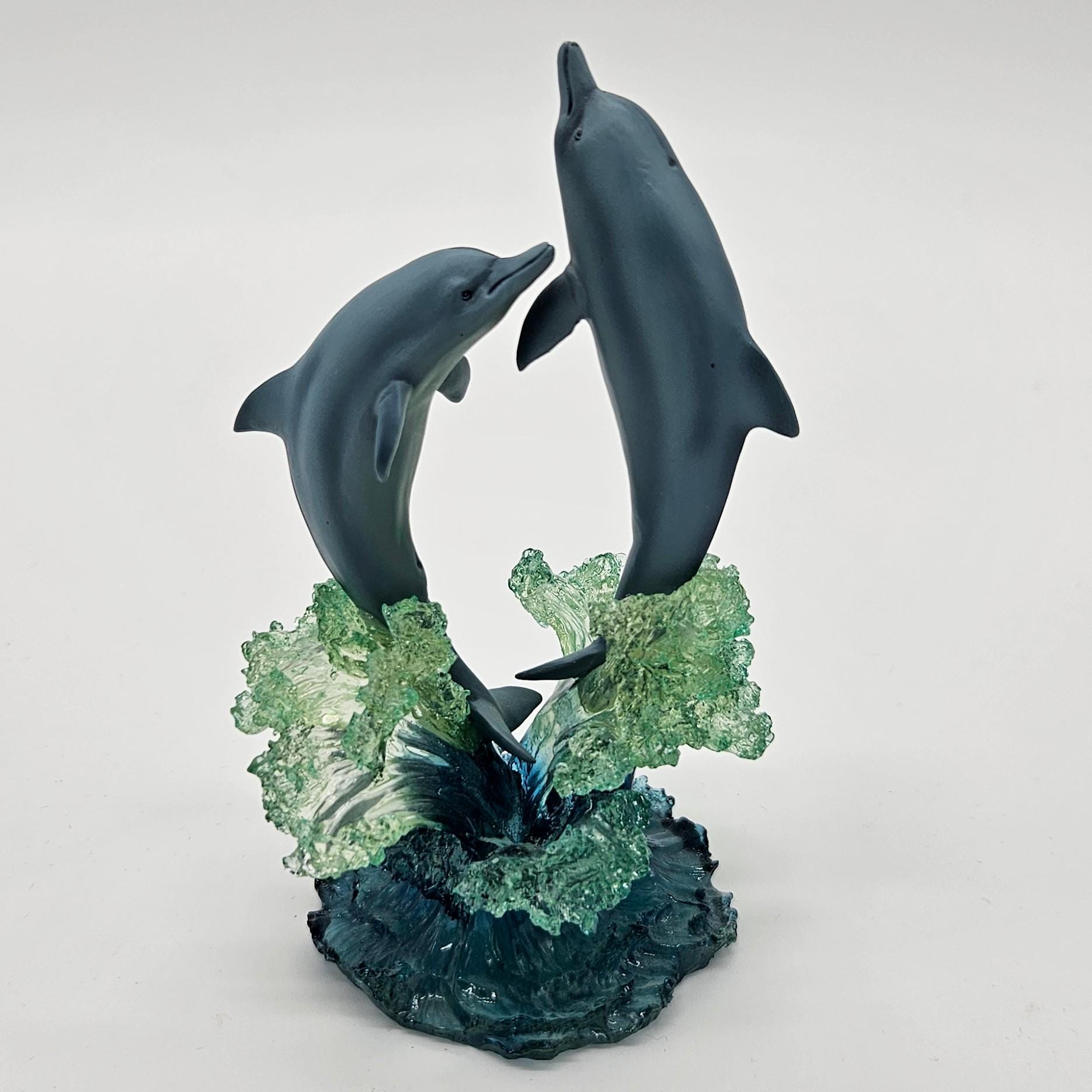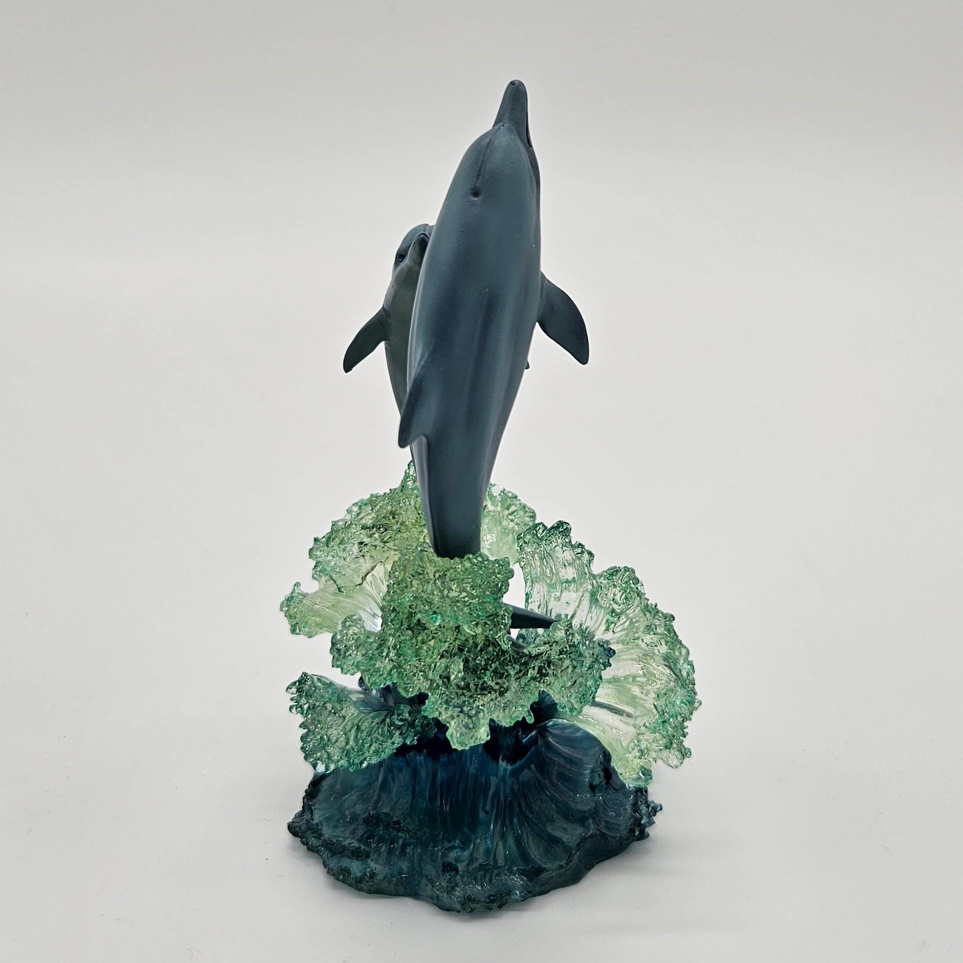 This vintage figurine from the Christian Riese Lassen collection is marine magic. “Embracing The Light” model #9485. This mini sculpture features dolphins dancing through light and water in the signature Lassen palette of deep blues, aquas and luminous movement.