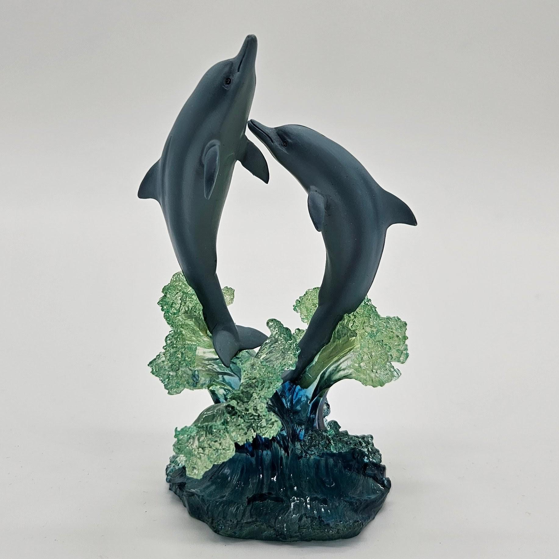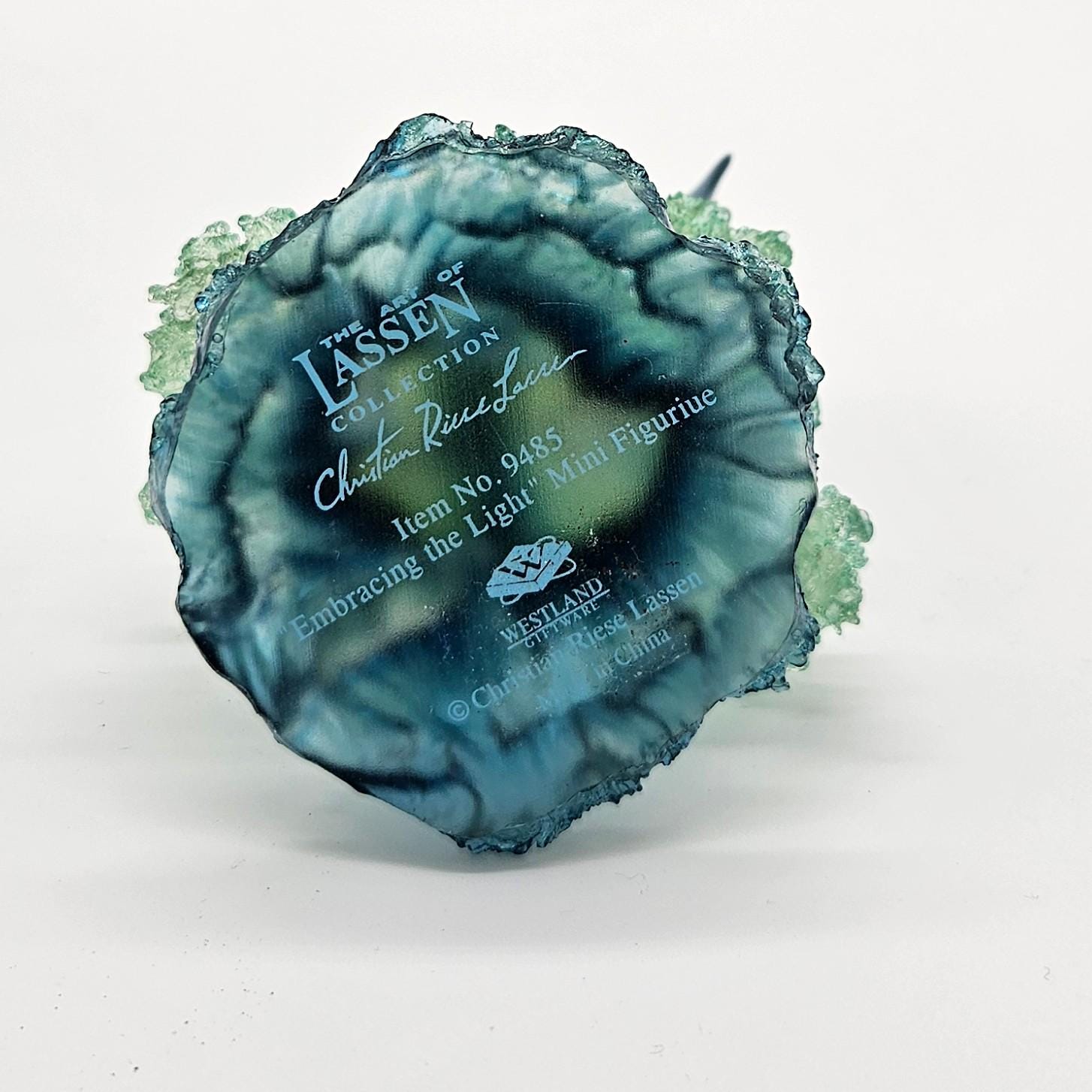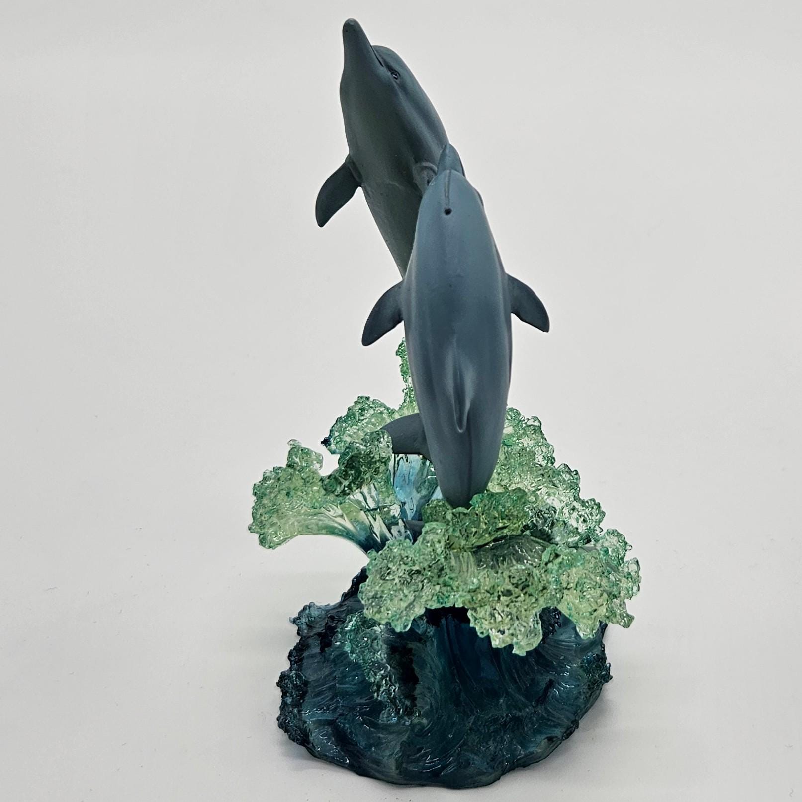 This vintage figurine from the Christian Riese Lassen collection is marine magic. “Embracing The Light” model #9485. This mini sculpture features dolphins dancing through light and water in the signature Lassen palette of deep blues, aquas and luminous movement.