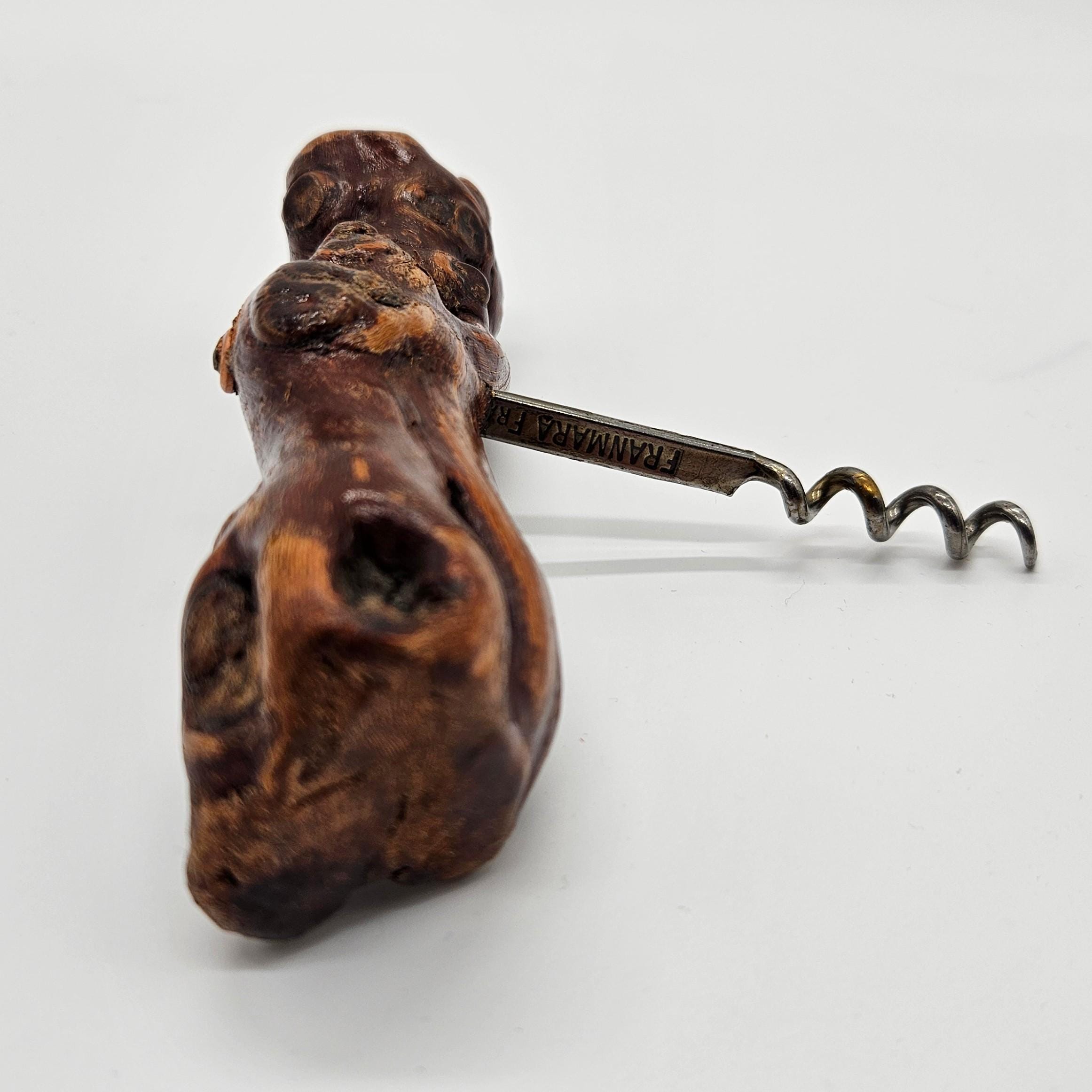 This vintage Franmara corkscrew is a gem for anyone who loves rustic or natural wood barware. The handle is made from a real piece of branch wood with all its original knots.