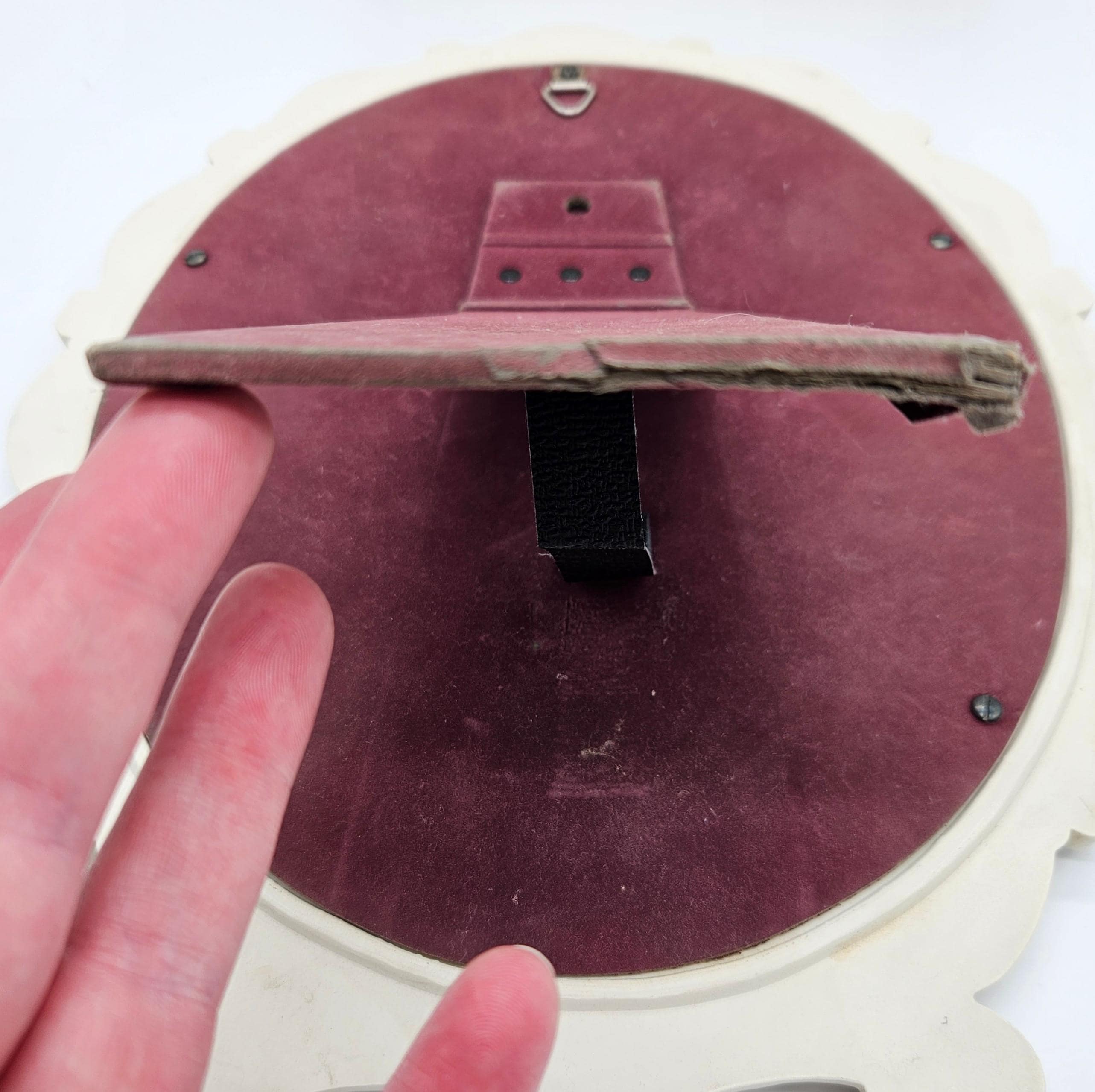 The back panel is removable and secured with small screws. Please note: the backing shows visible wear from age/use and is not in excellent condition (cosmetic only—still functional).