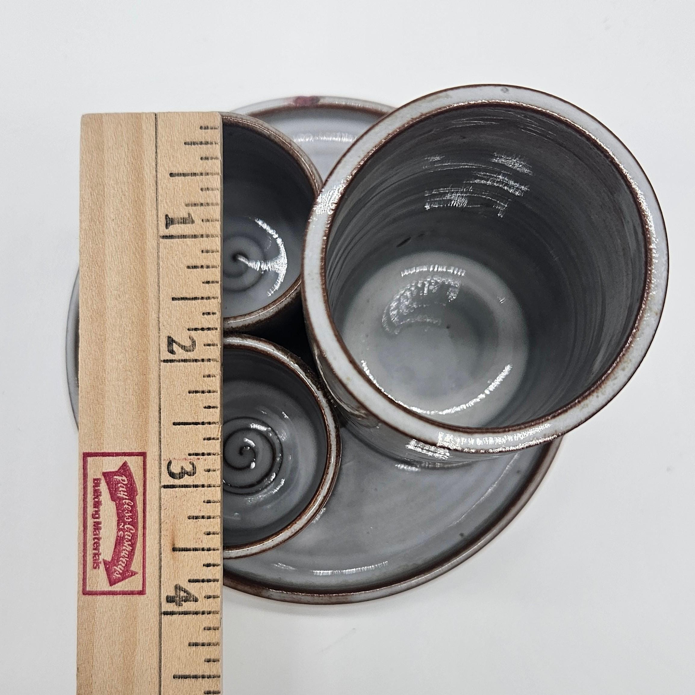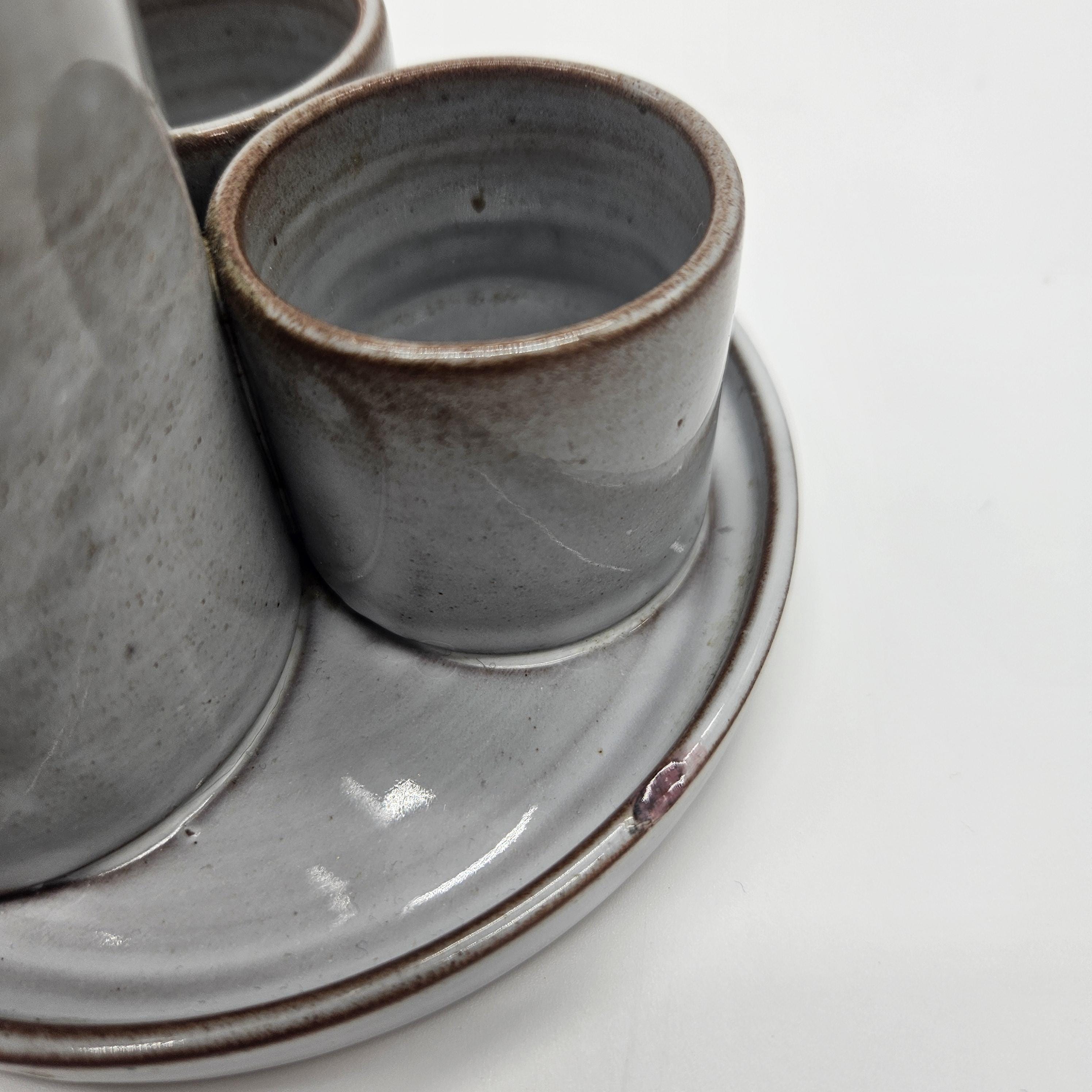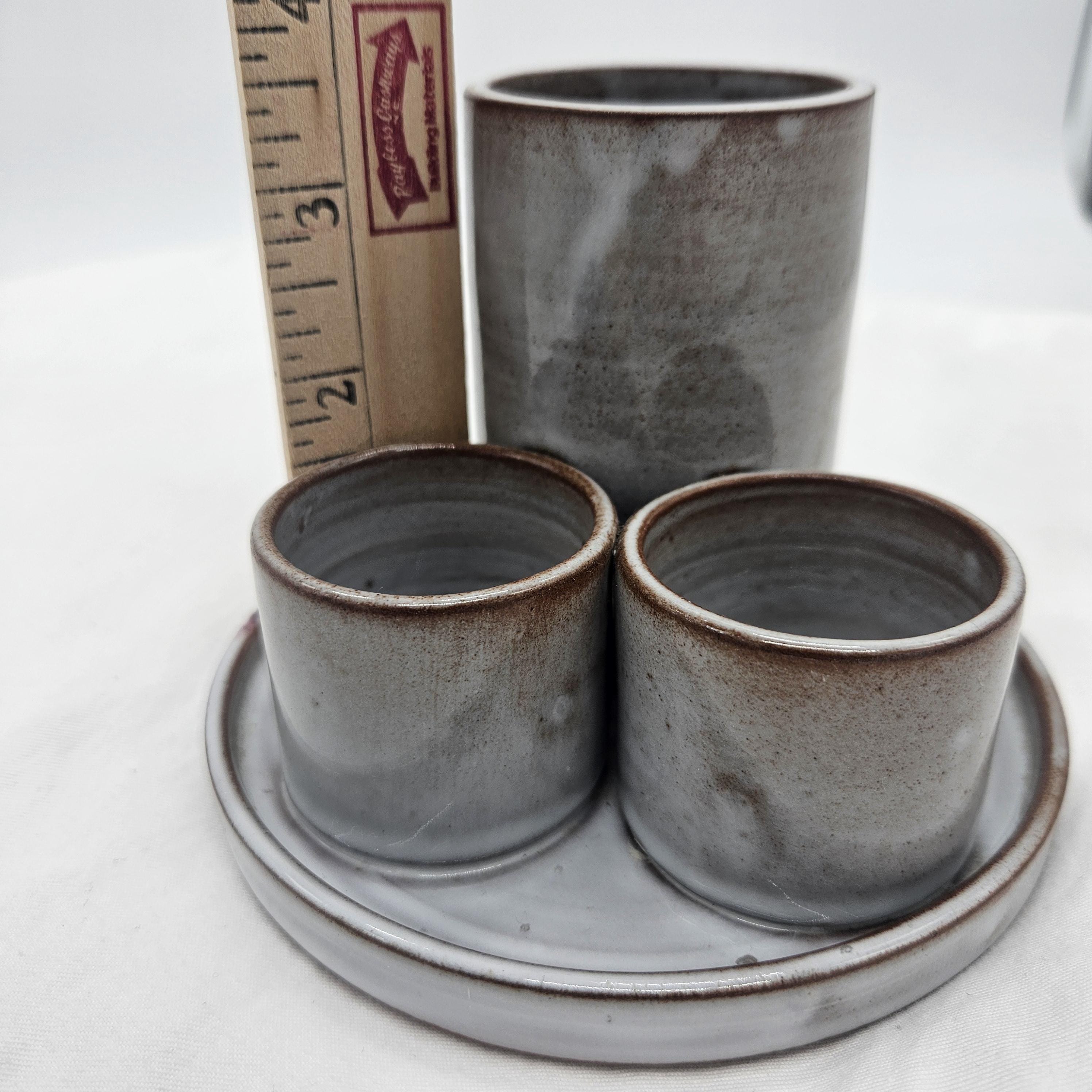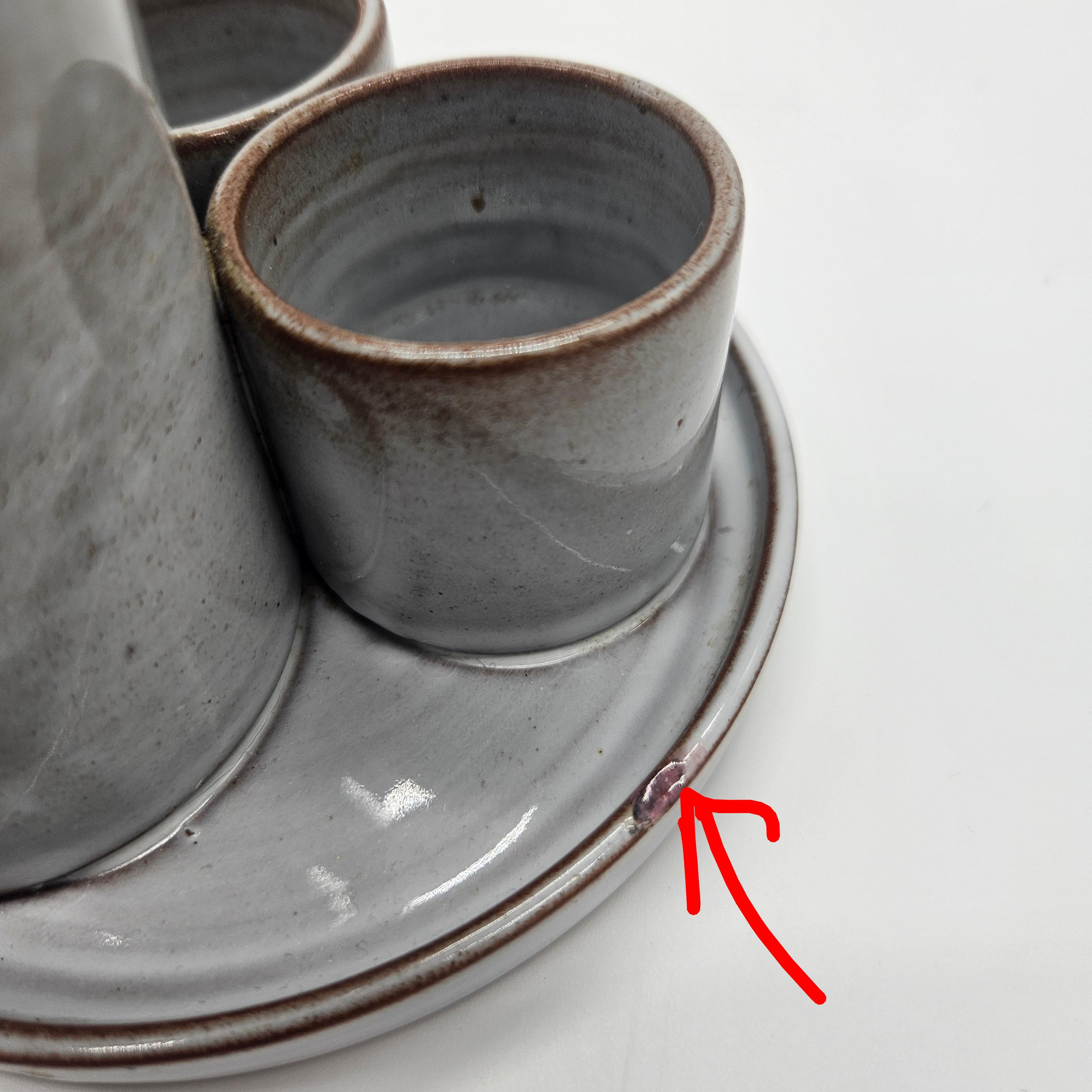 Small ding/chip on the rim of the tray (appears glazed over) — see close-up photo. Overall good vintage condition with light wear.Great for:Toothbrushes Makeup brushes / skincare toolsQ-tips Pens, paint brushes, or desk supplies