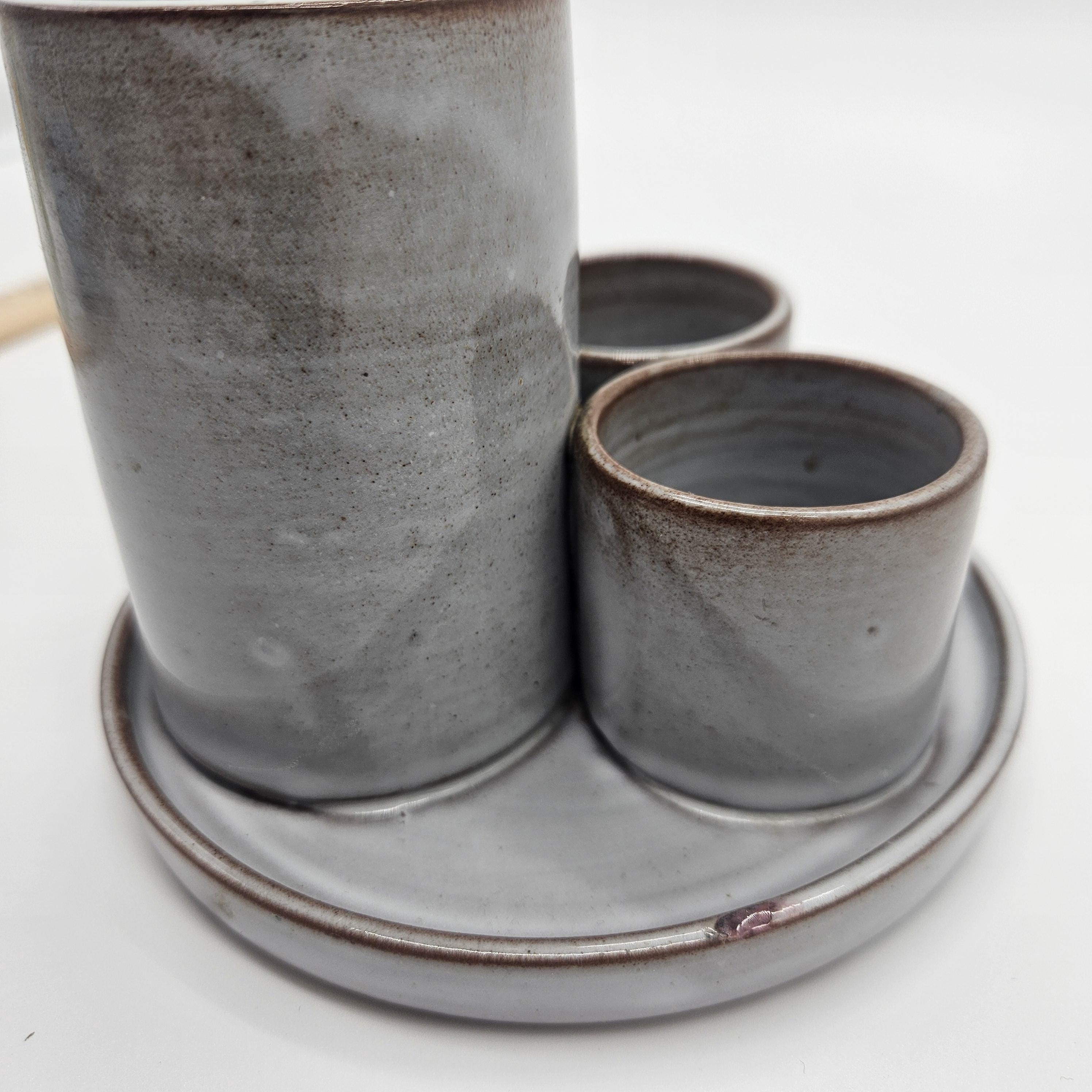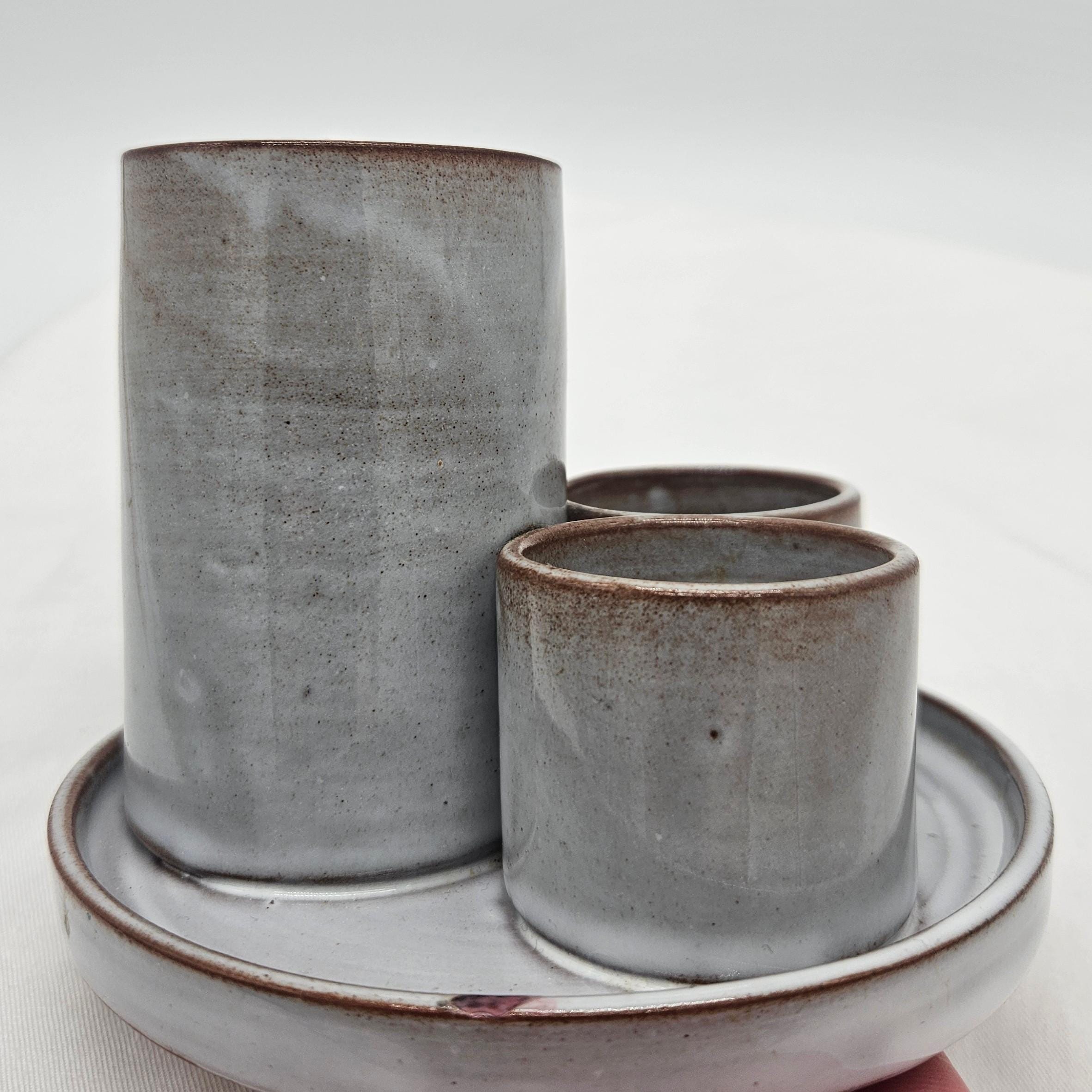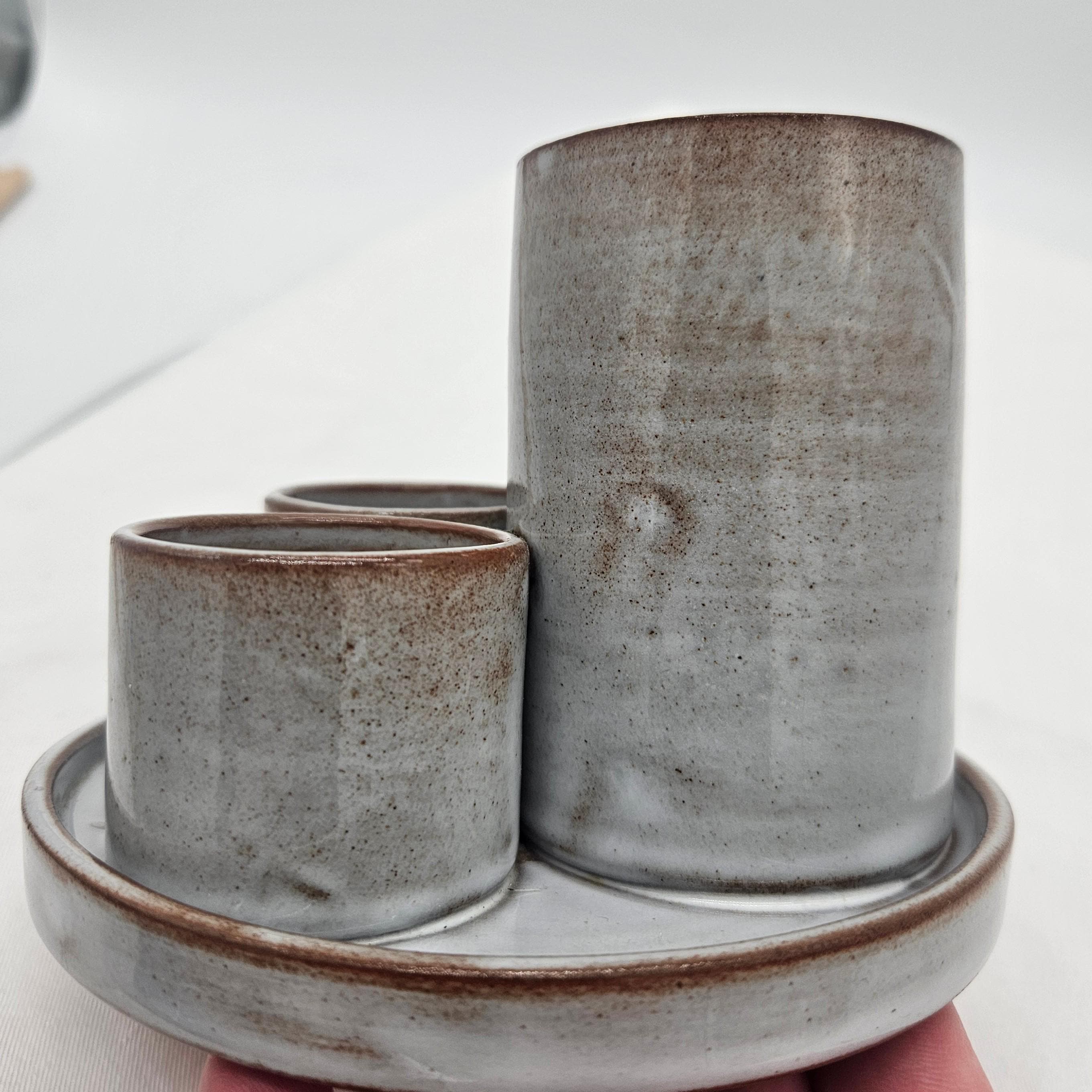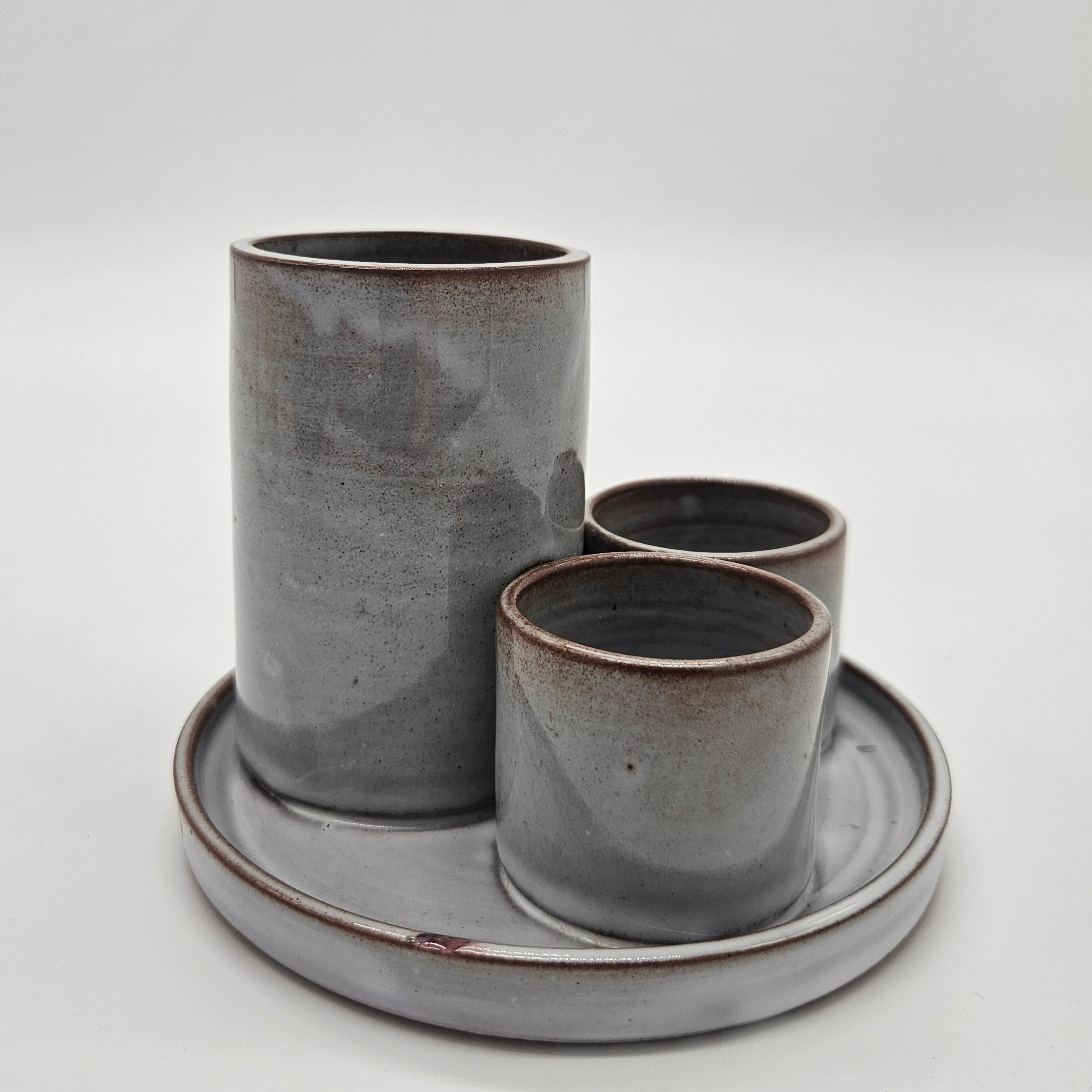 Small ding/chip on the rim of the tray (appears glazed over) — see close-up photo. Overall good vintage condition with light wear.Great for:Toothbrushes Makeup brushes / skincare toolsQ-tips Pens, paint brushes, or desk supplies