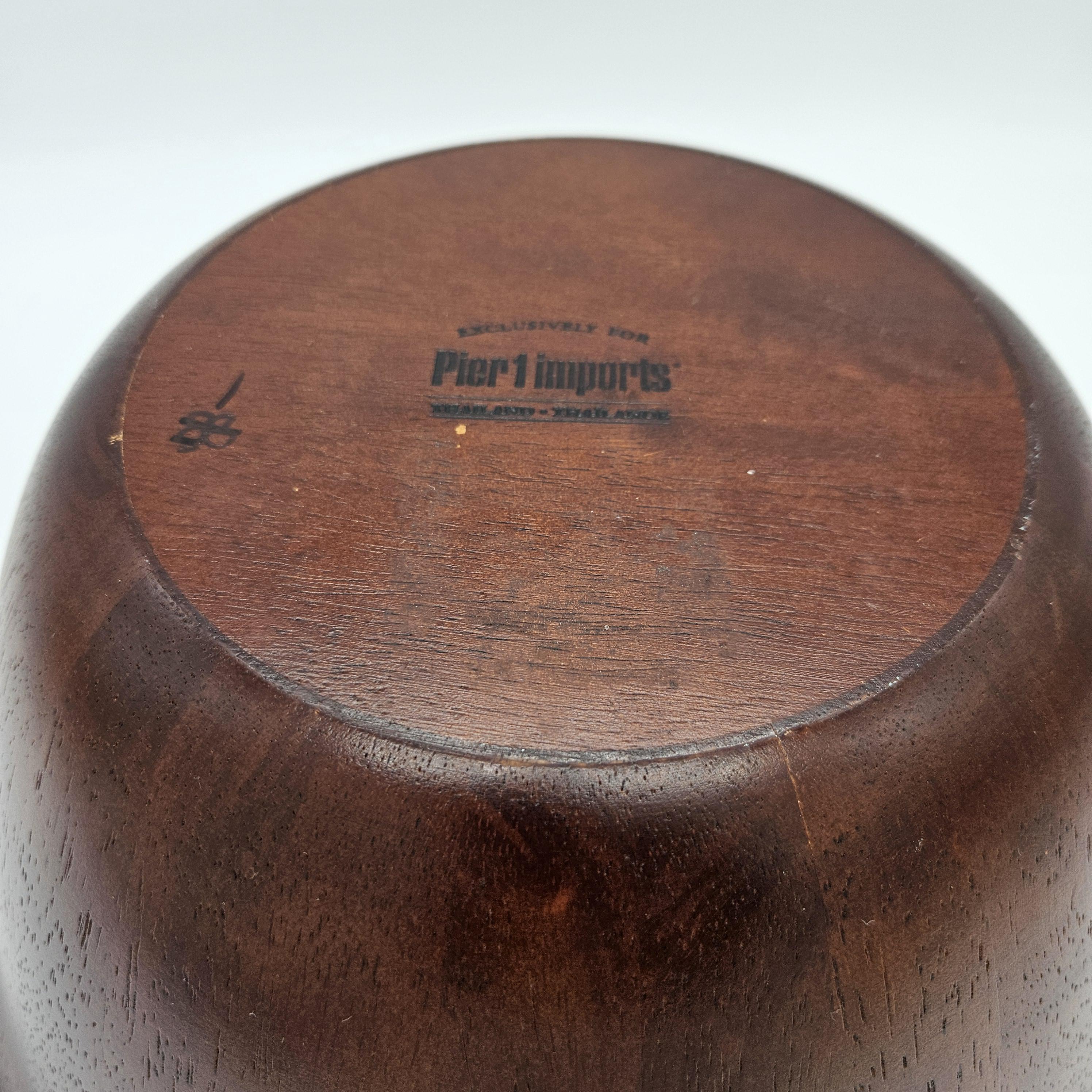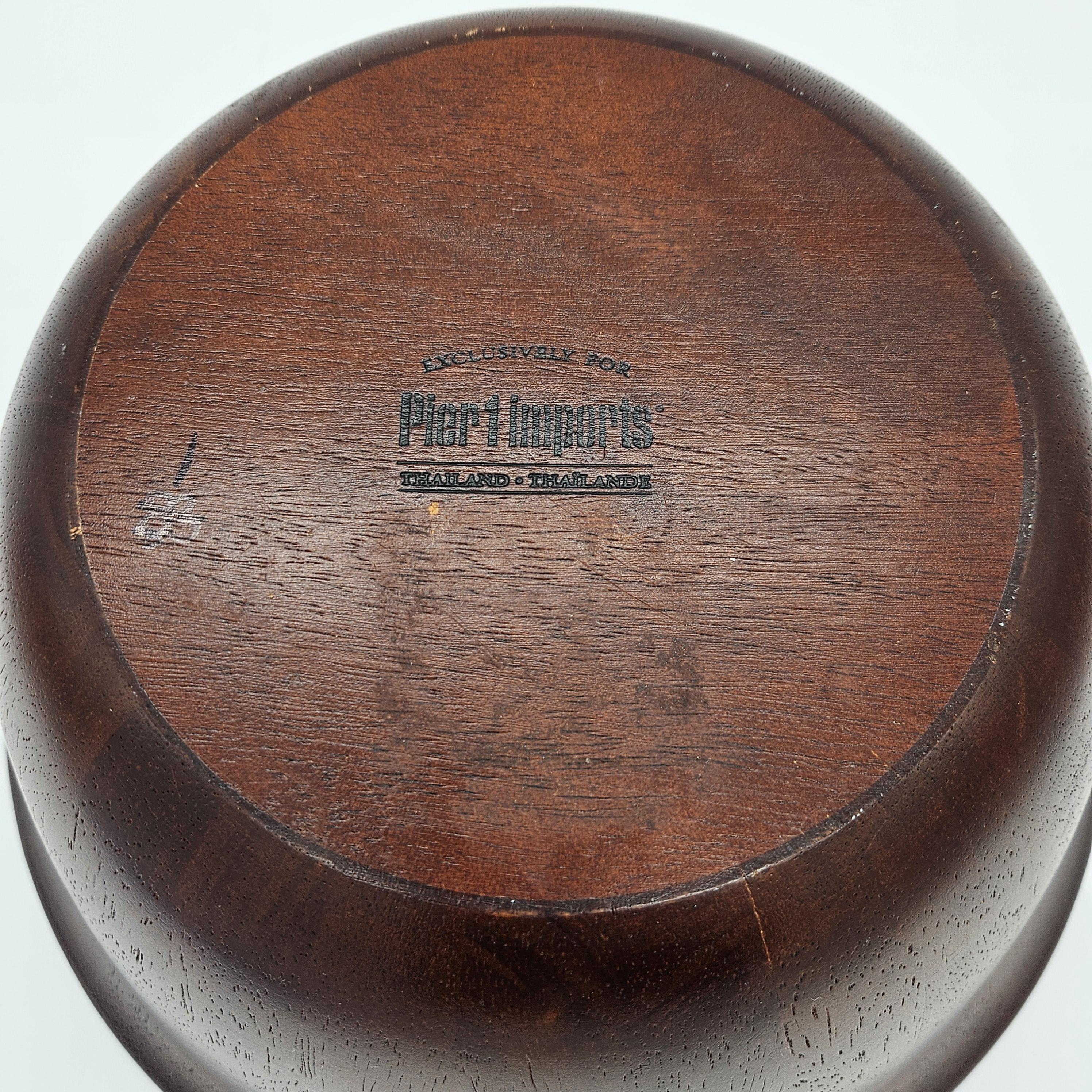 Large vintage Pier 1 Imports wooden serving bowl, marked on the bottom: “Exclusively for Pier 1 Imports - Thailand”