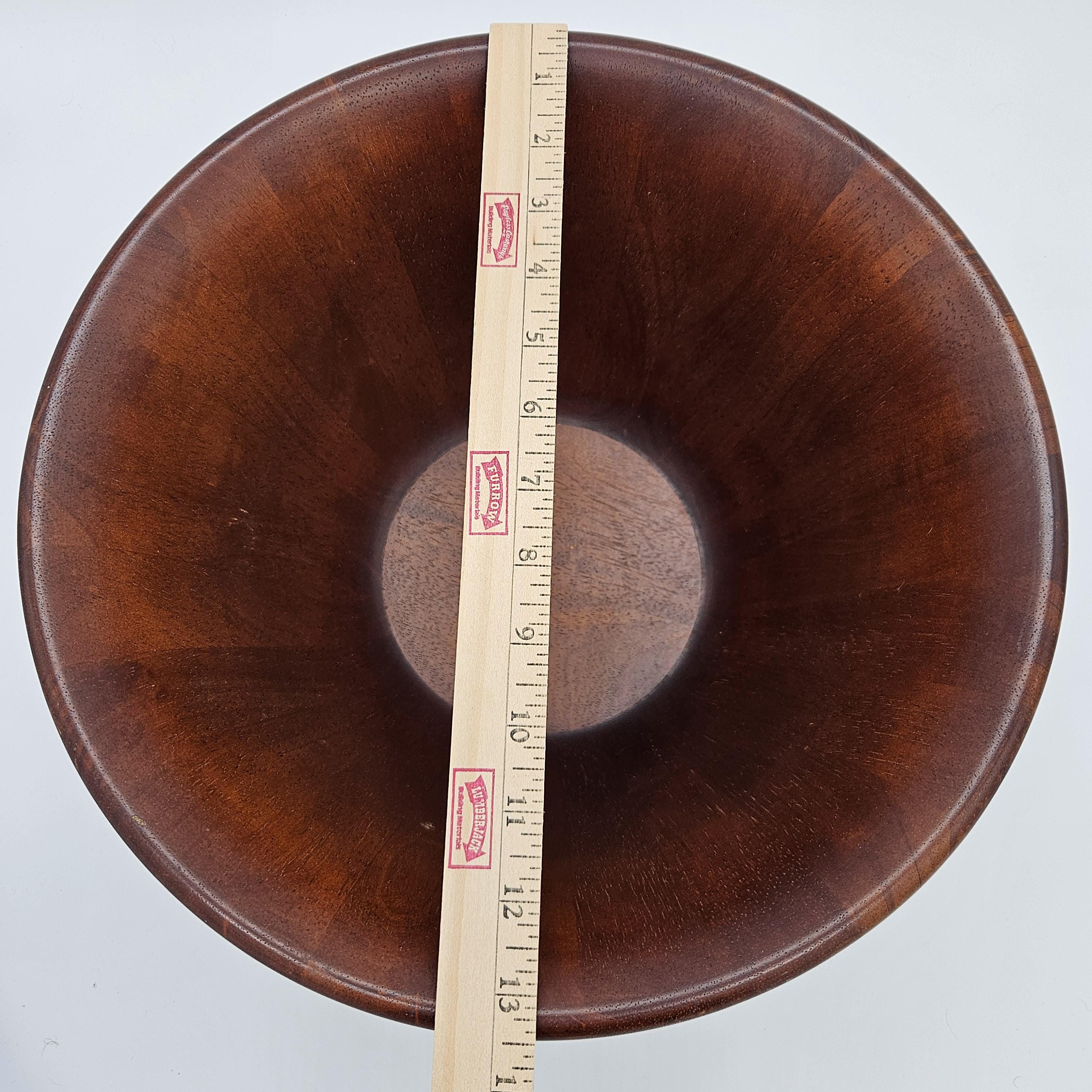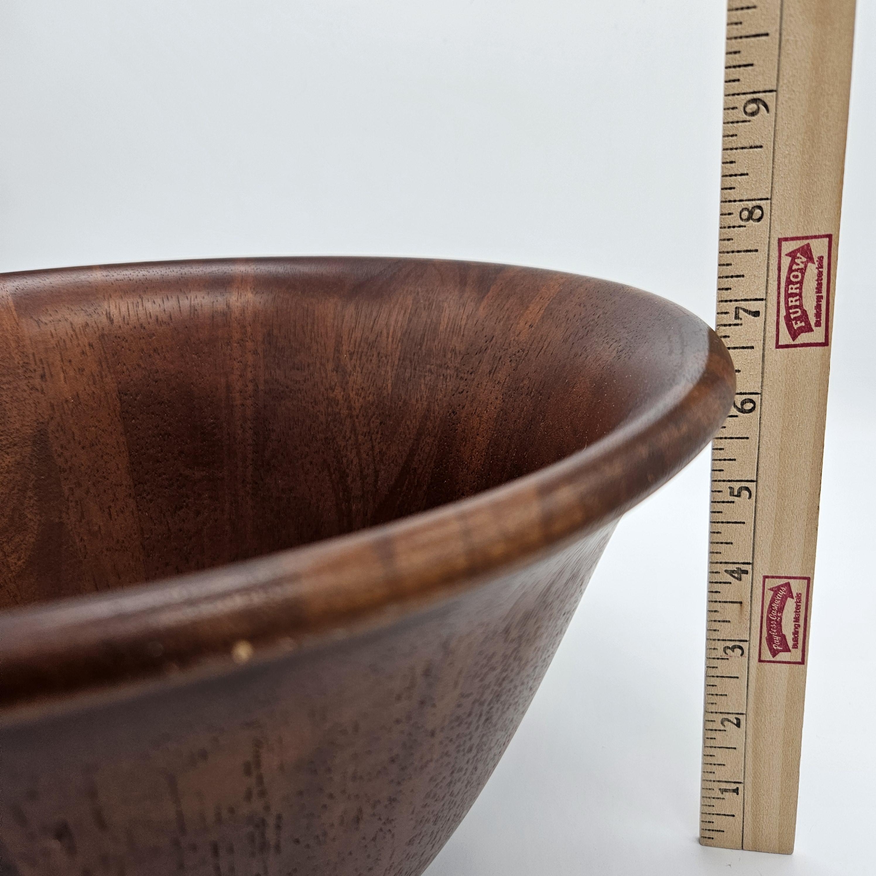 This is a beautiful oversized bowl with warm wood grain and a classic shape, perfect as a salad bowl, fruit bowl, or styled as a centerpiece on a dining table or kitchen counter.