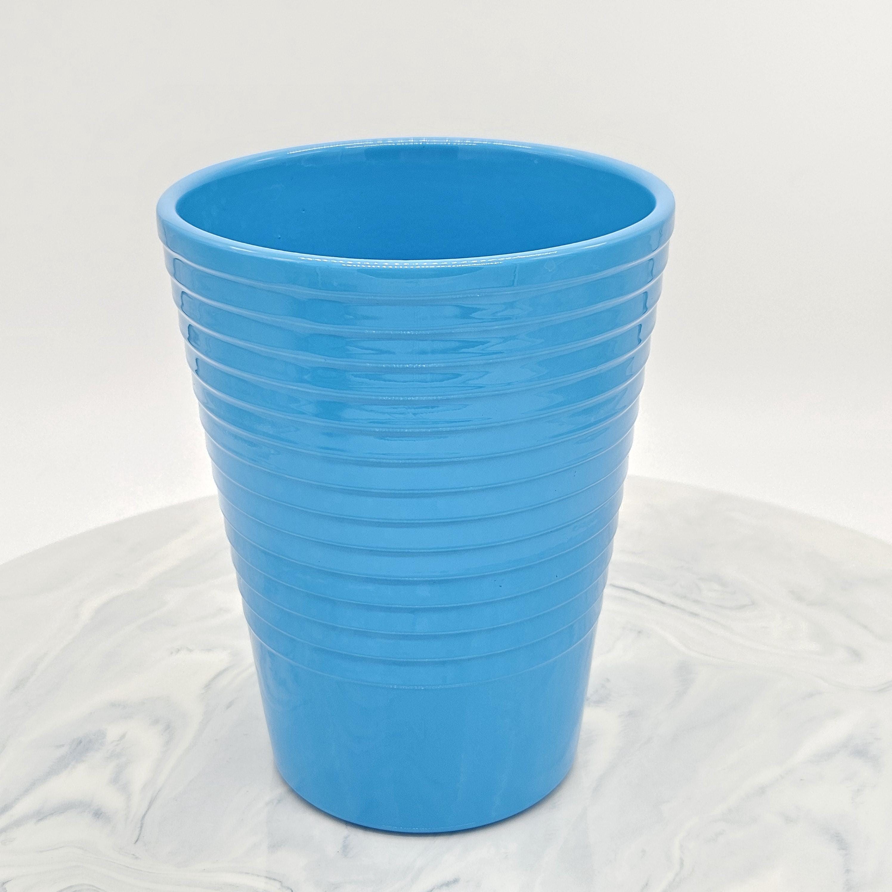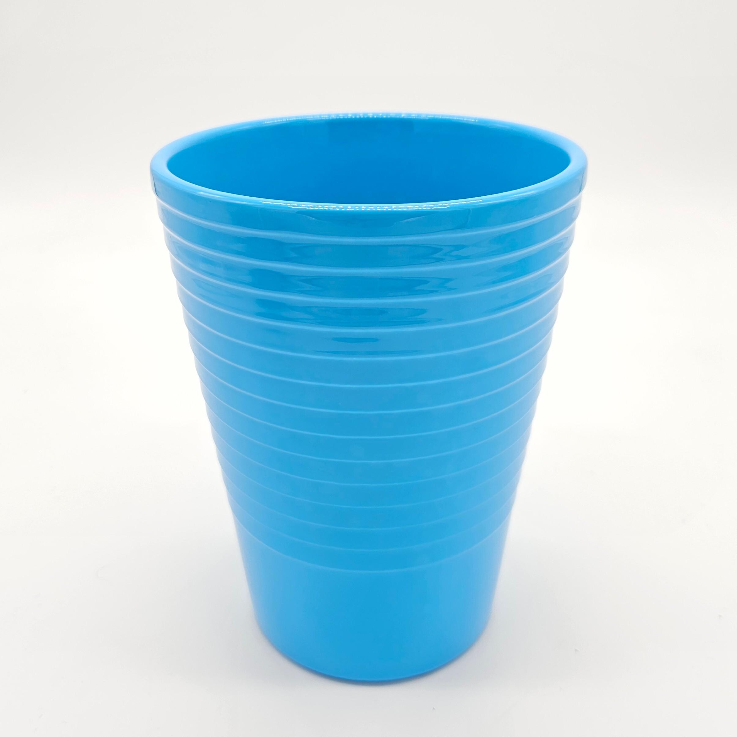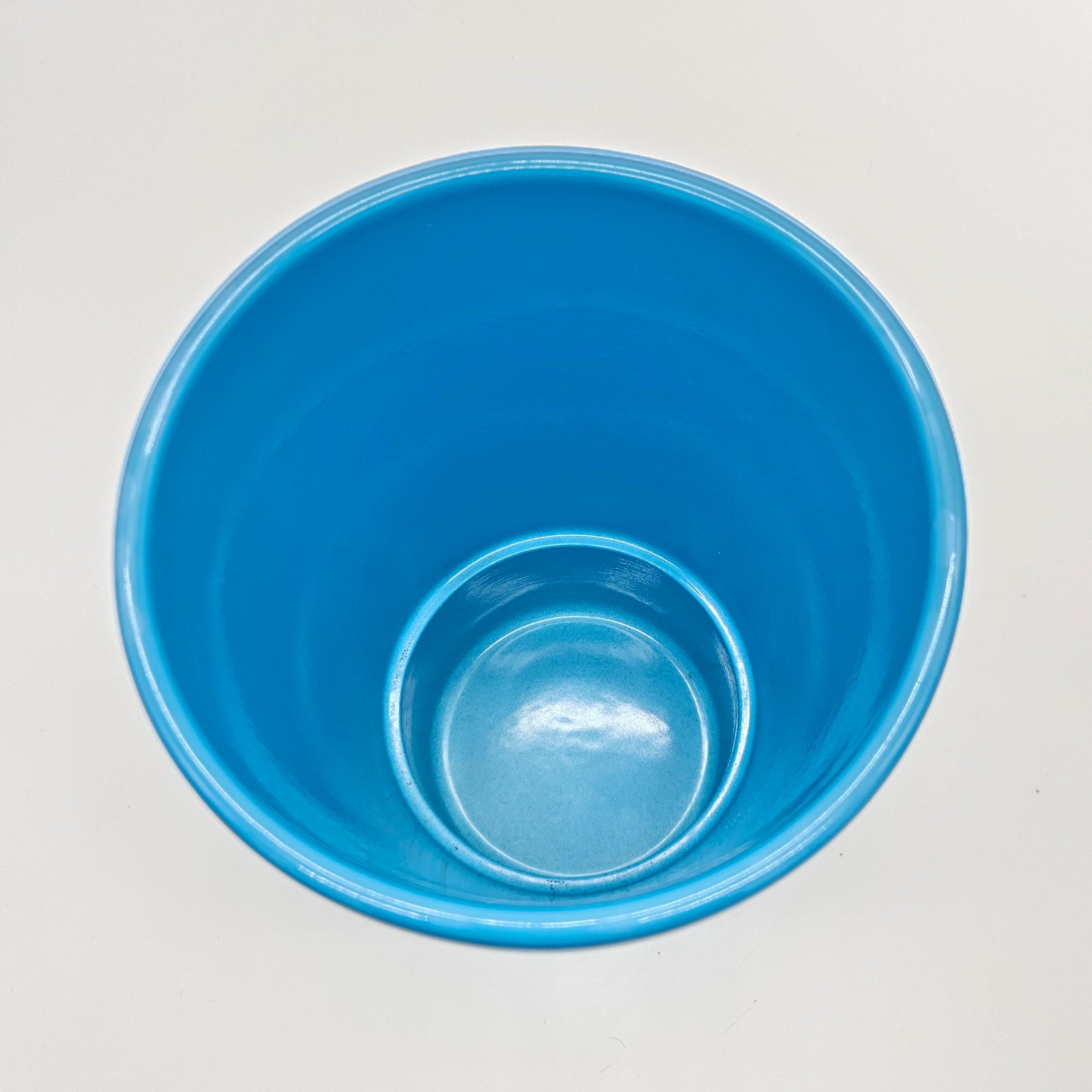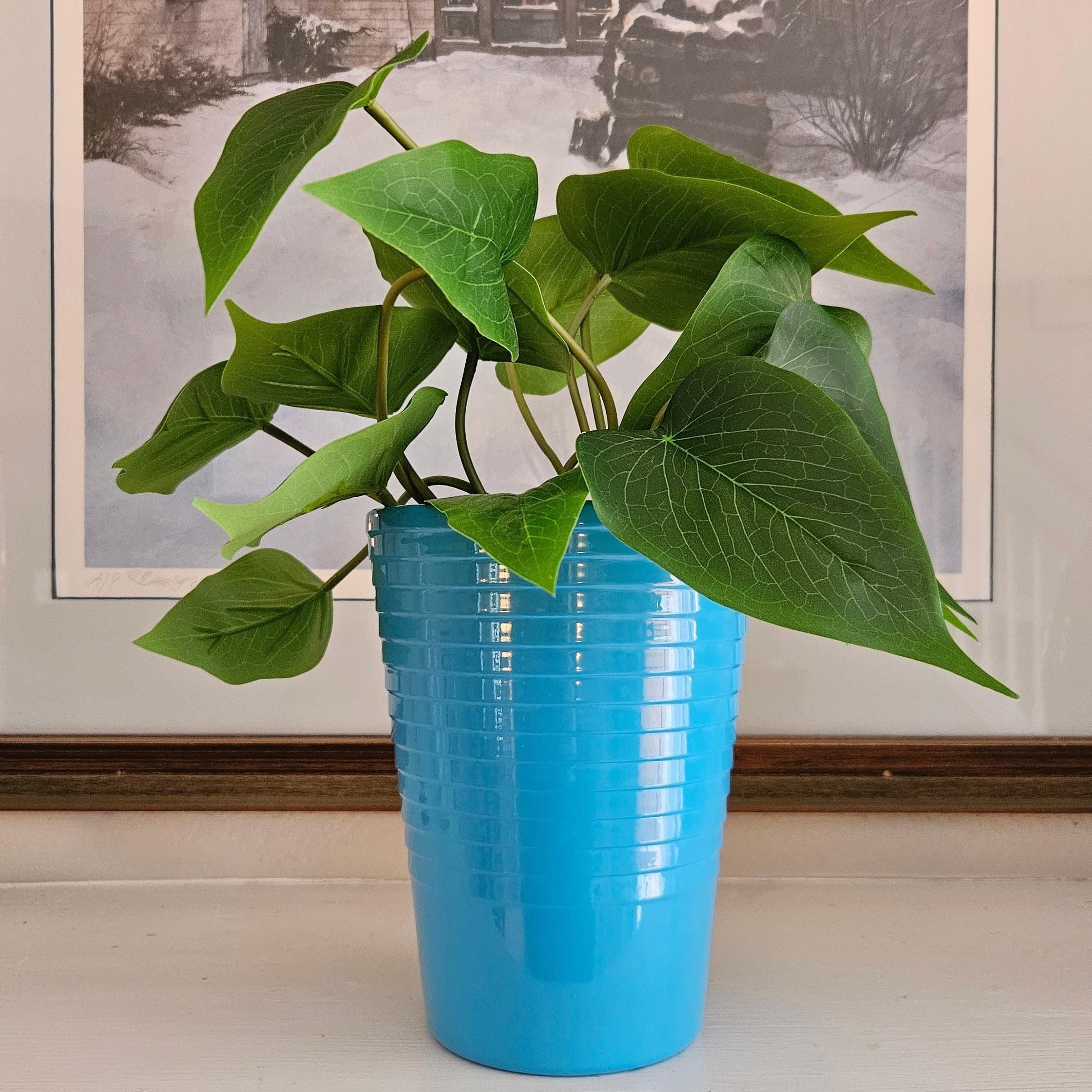 Beautiful vintage Made in Germany vase in a bright retro blue glaze. Clean modern shape with subtle horizontal banding, perfect for a mid-century modern shelf, entry table, or styled coffee table moment.