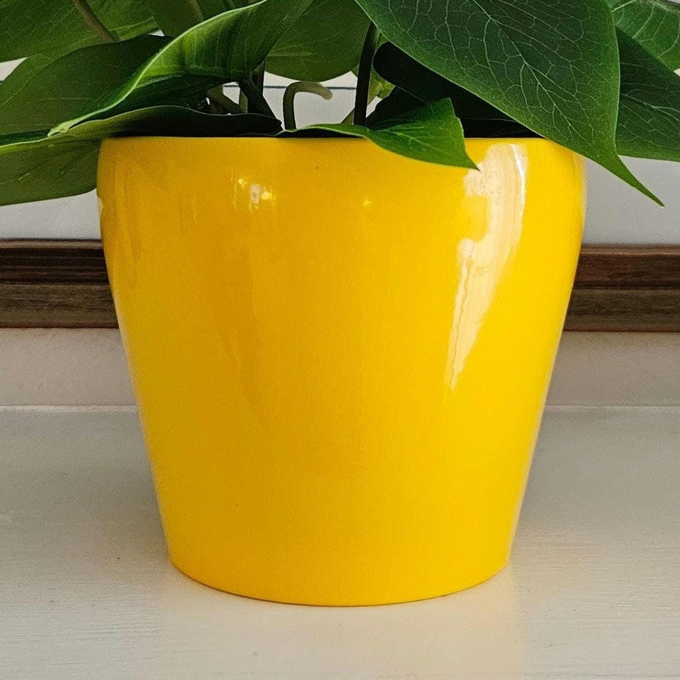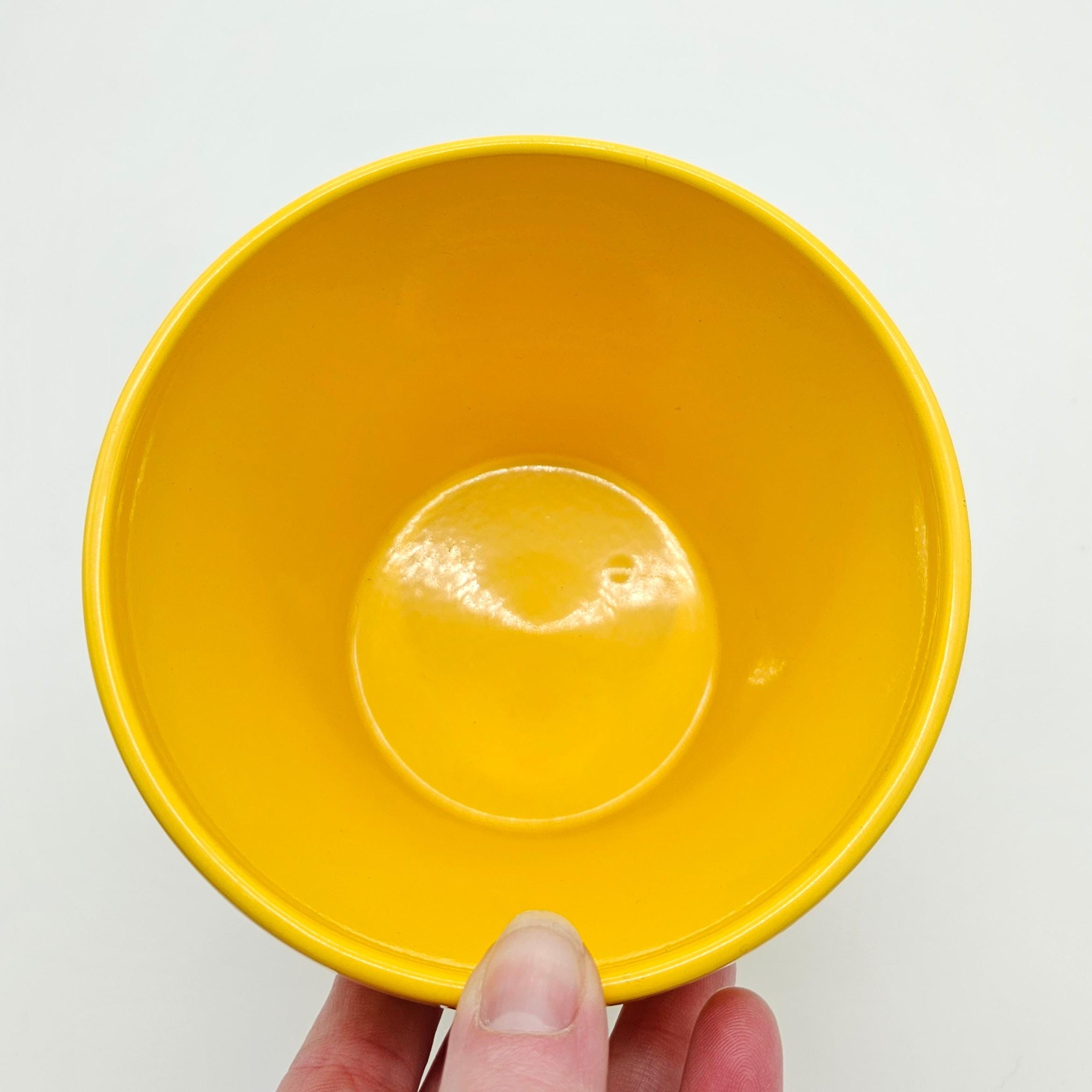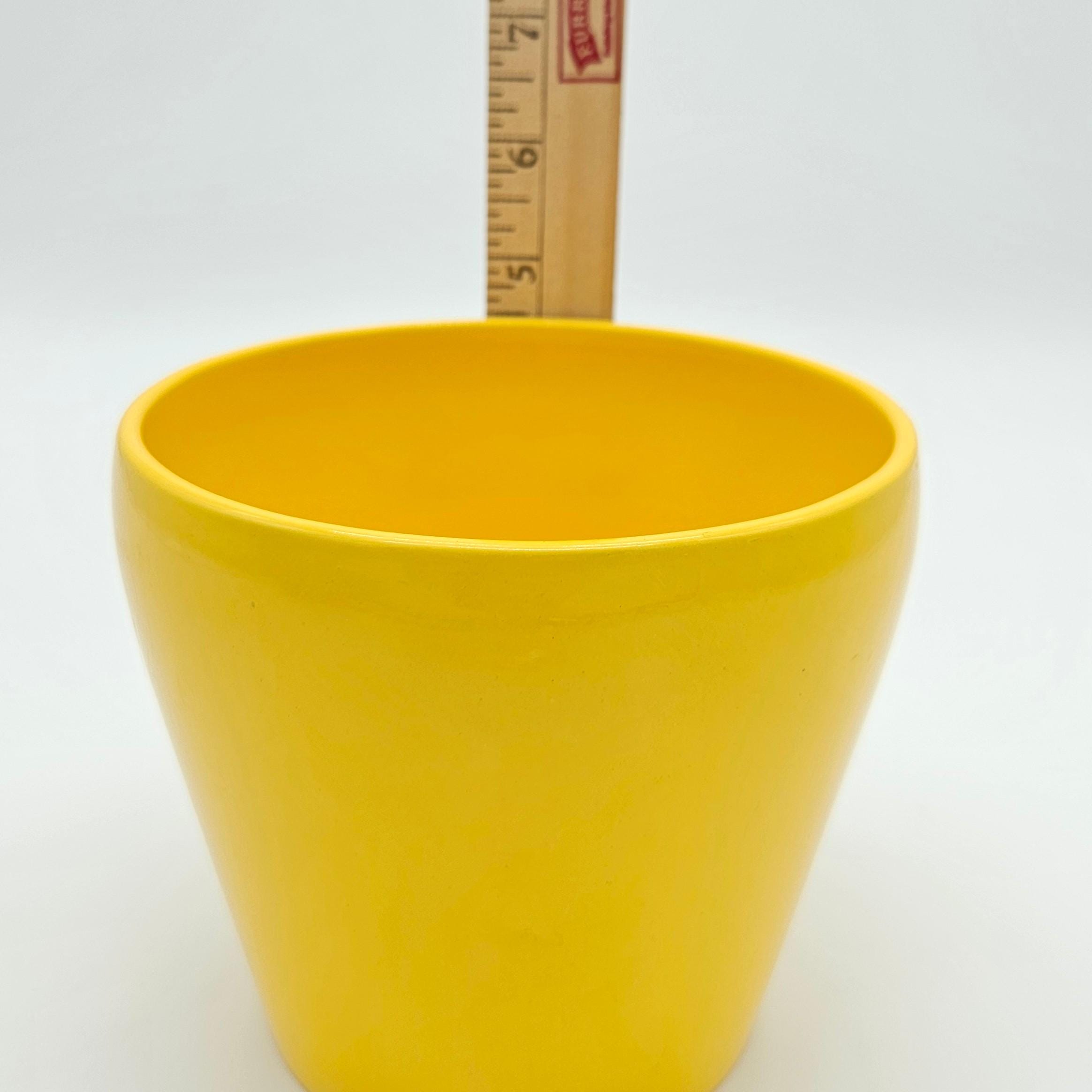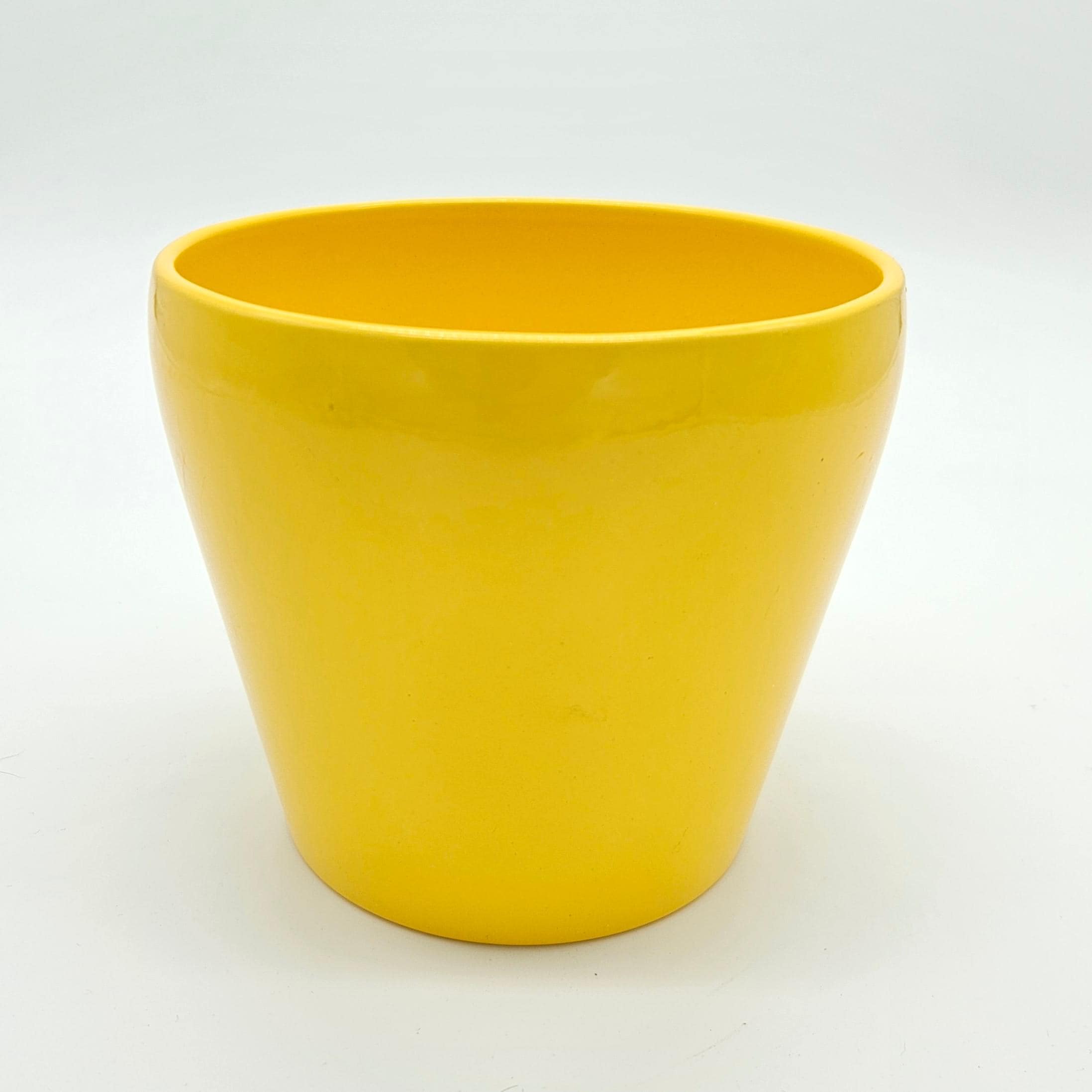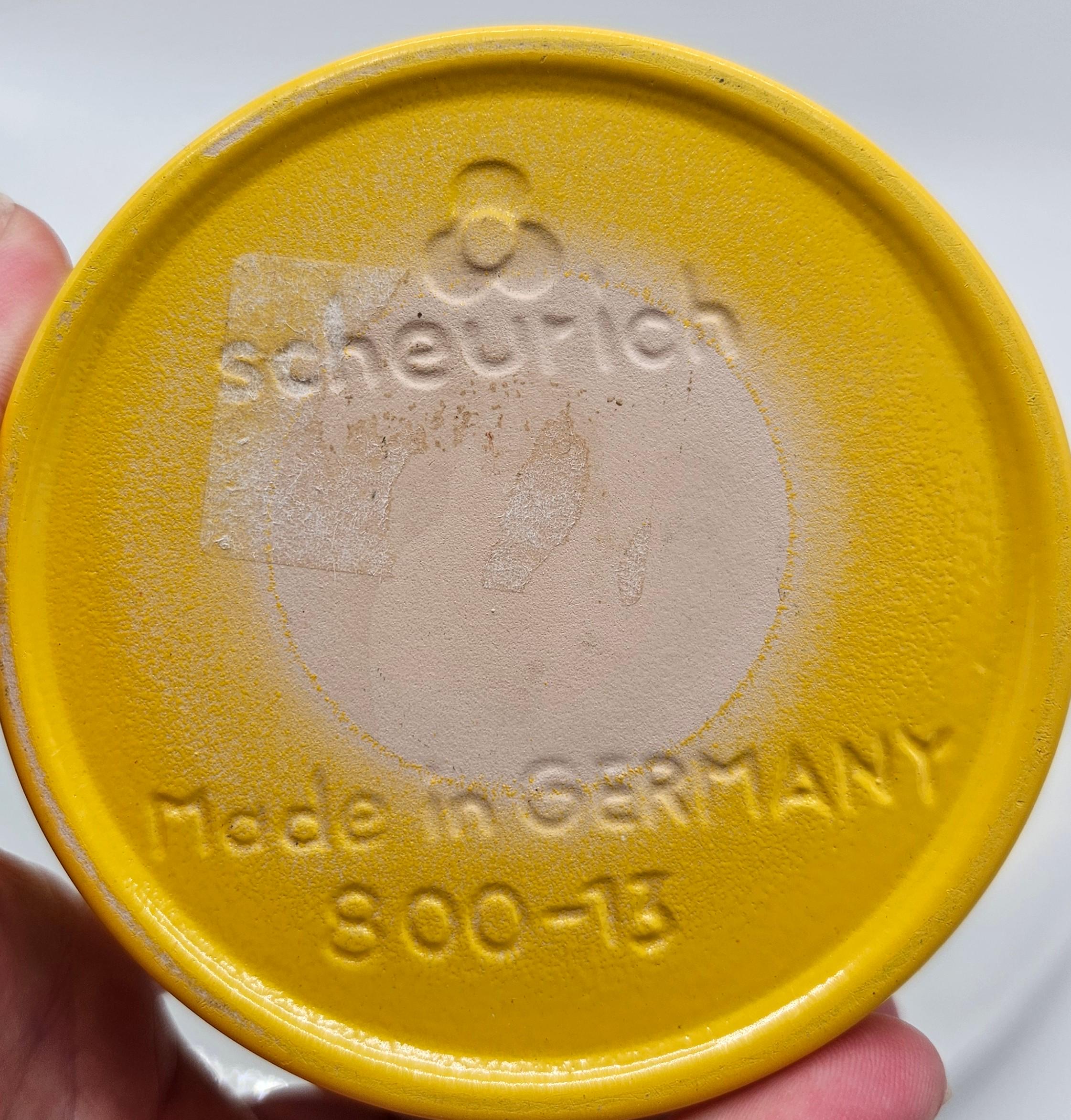 Bright vintage Scheurich Keramik ceramic cachepot / planter in a glossy sunshine yellow glaze. Classic West German modern shape that looks amazing styled with a small houseplant, herbs, or as a cheerful pop of color on a shelf. Perfect for mid-century modern, retro, or eclectic home decor.