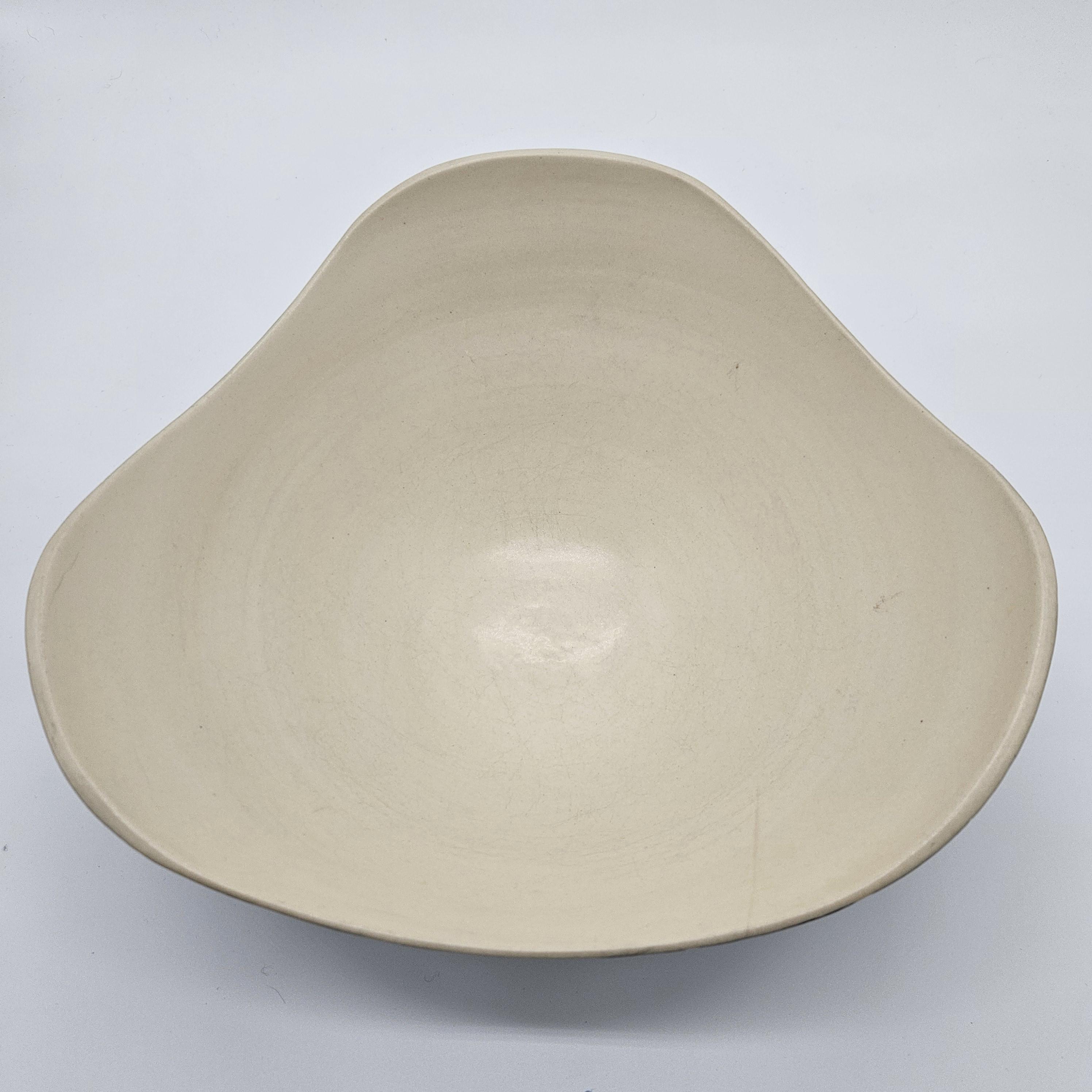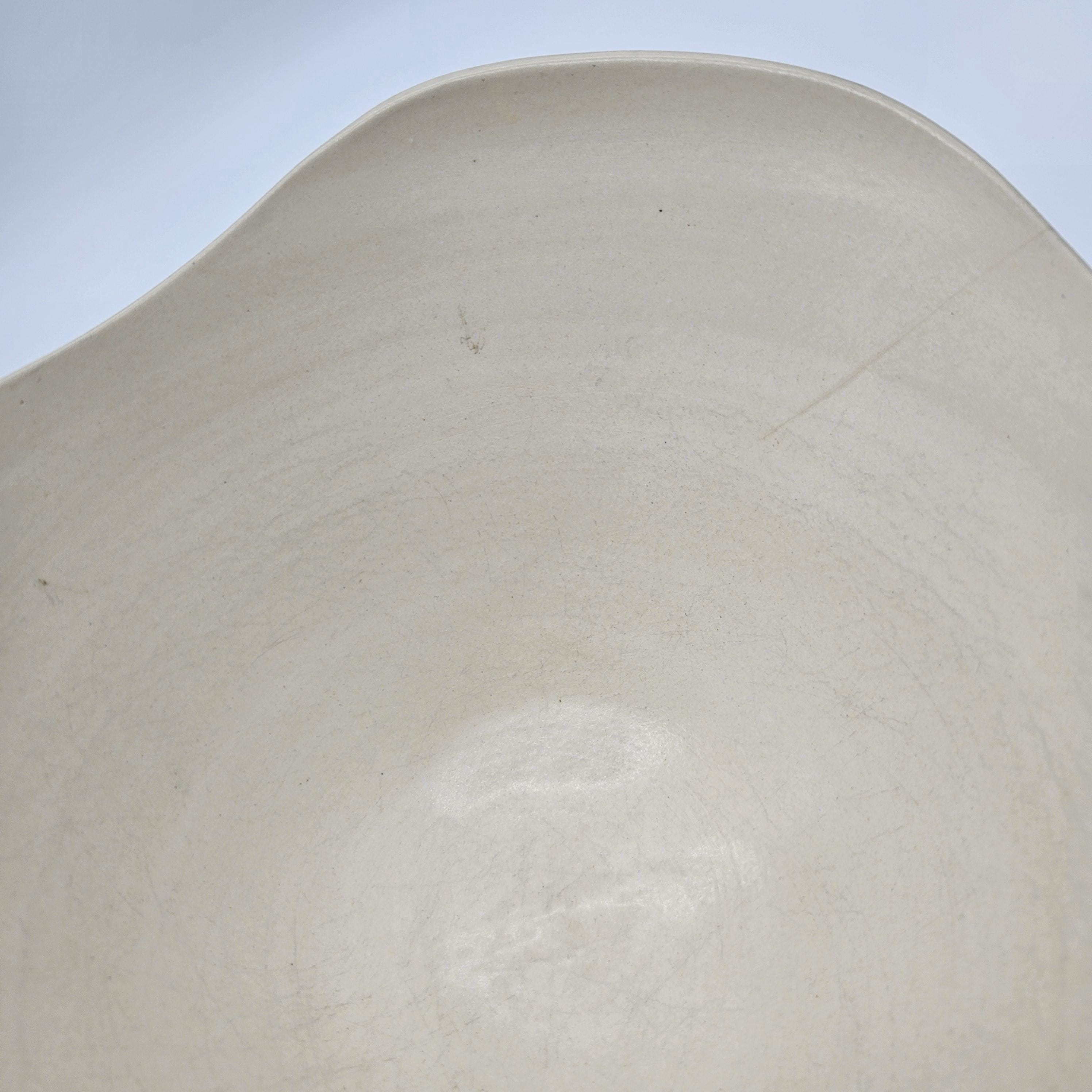 Good vintage condition overall. Please note there is one small chip on the rim, and it appears a prior owner attempted to disguise it with a dark marker (visible in close-up photos). This does not affect the structure, but it is present and priced accordingly. There also appears to be an interior under-glaze firing flaw or small interior crack in the bowl.