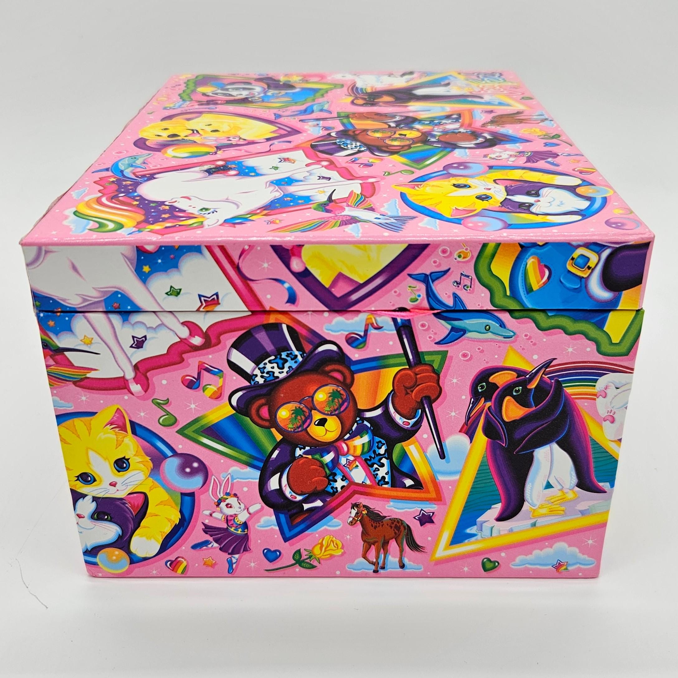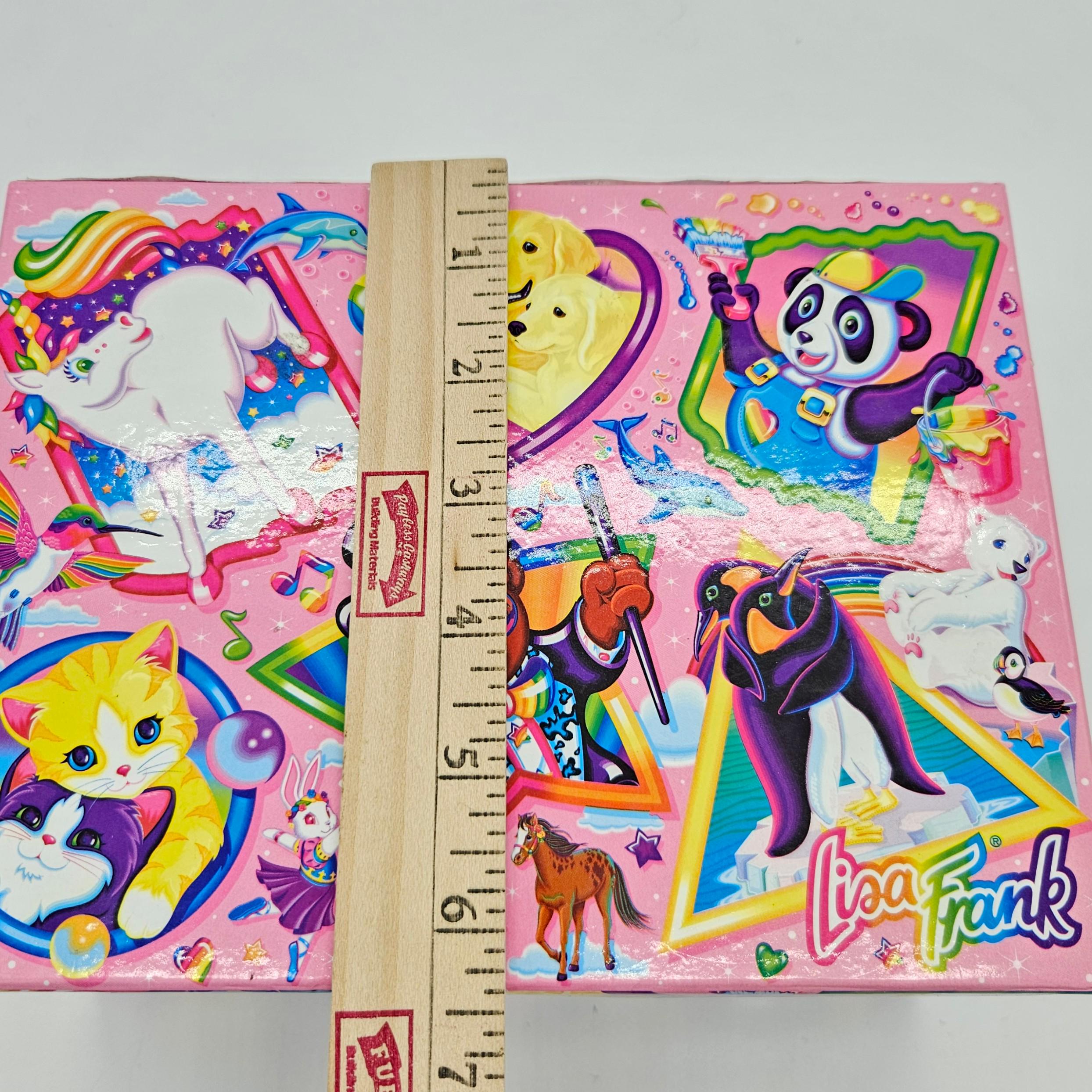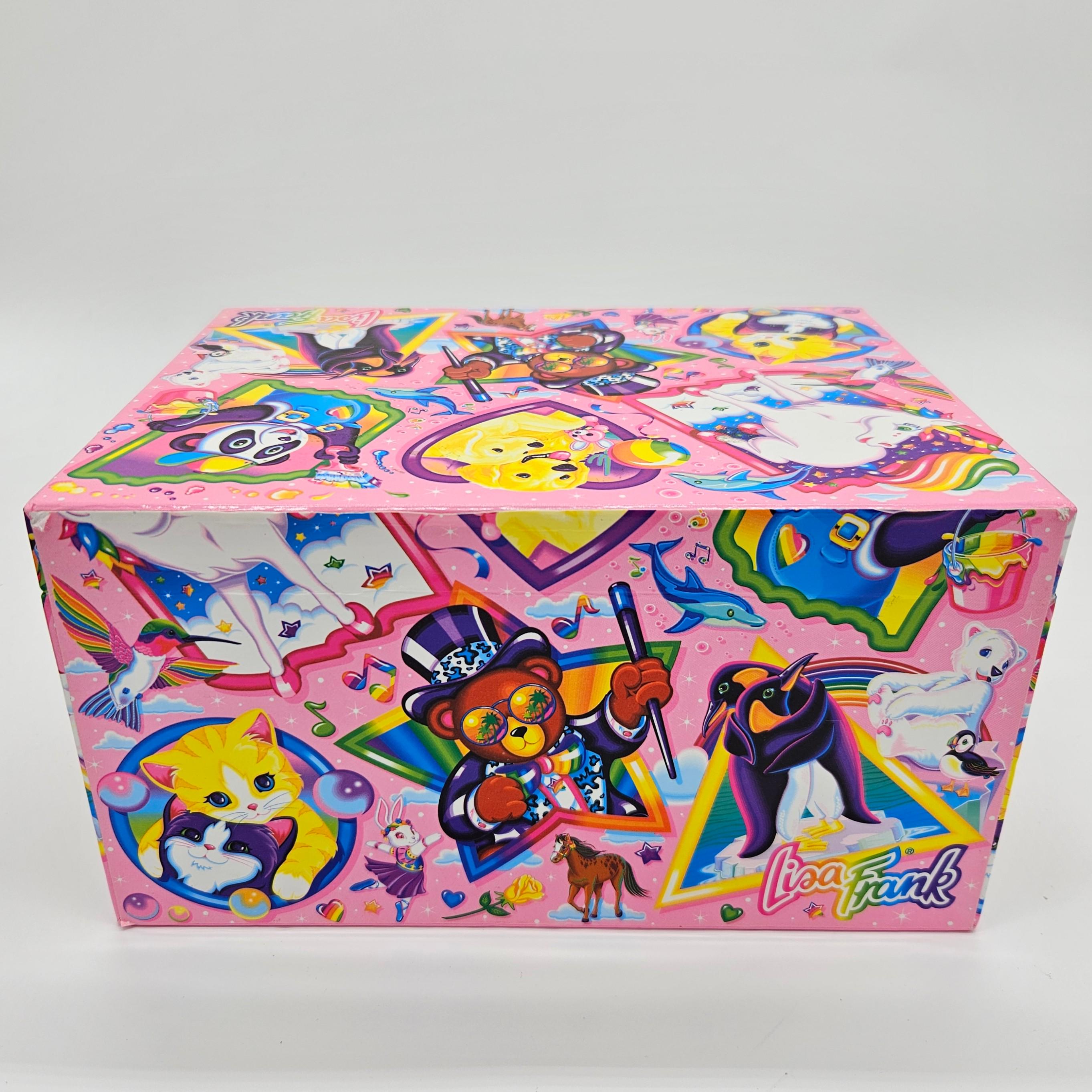 Step straight back into the 1990s with this vintage Lisa Frank stationery box, featuring a vibrant multi-character collage design with iconic favorites including Panda Painter, Markie the Bear, unicorns, kittens, penguins and more. This artwork was used on select Lisa Frank storage boxes and is rarely seen outside of these pieces.