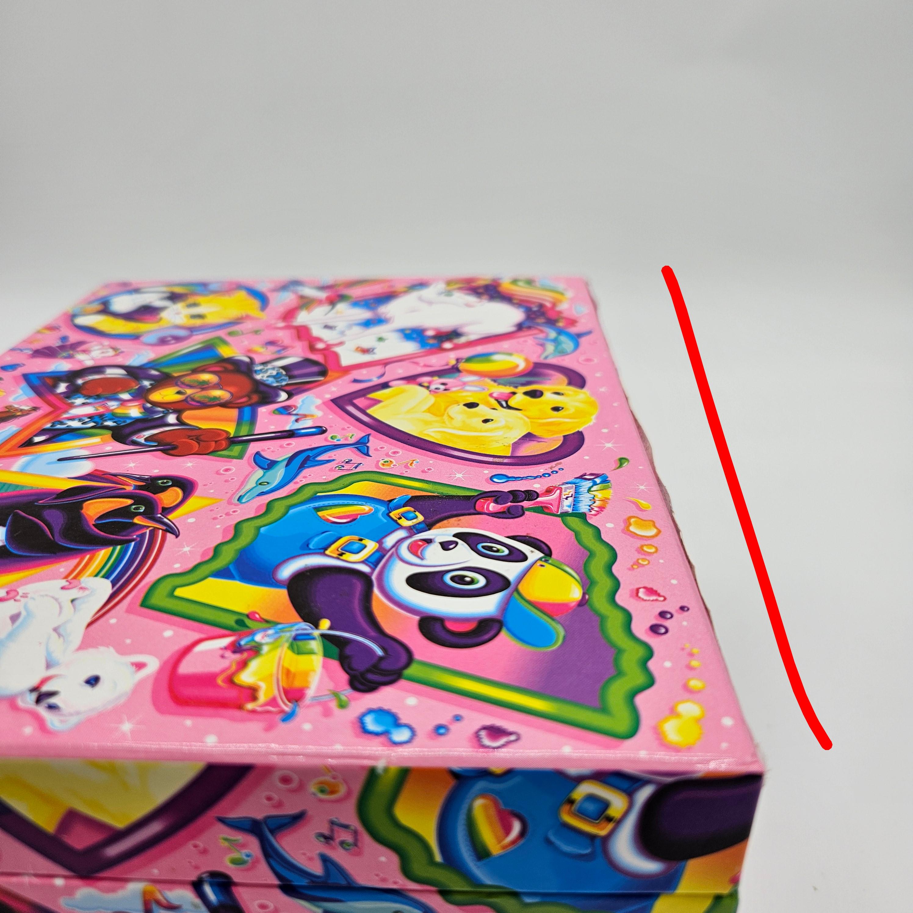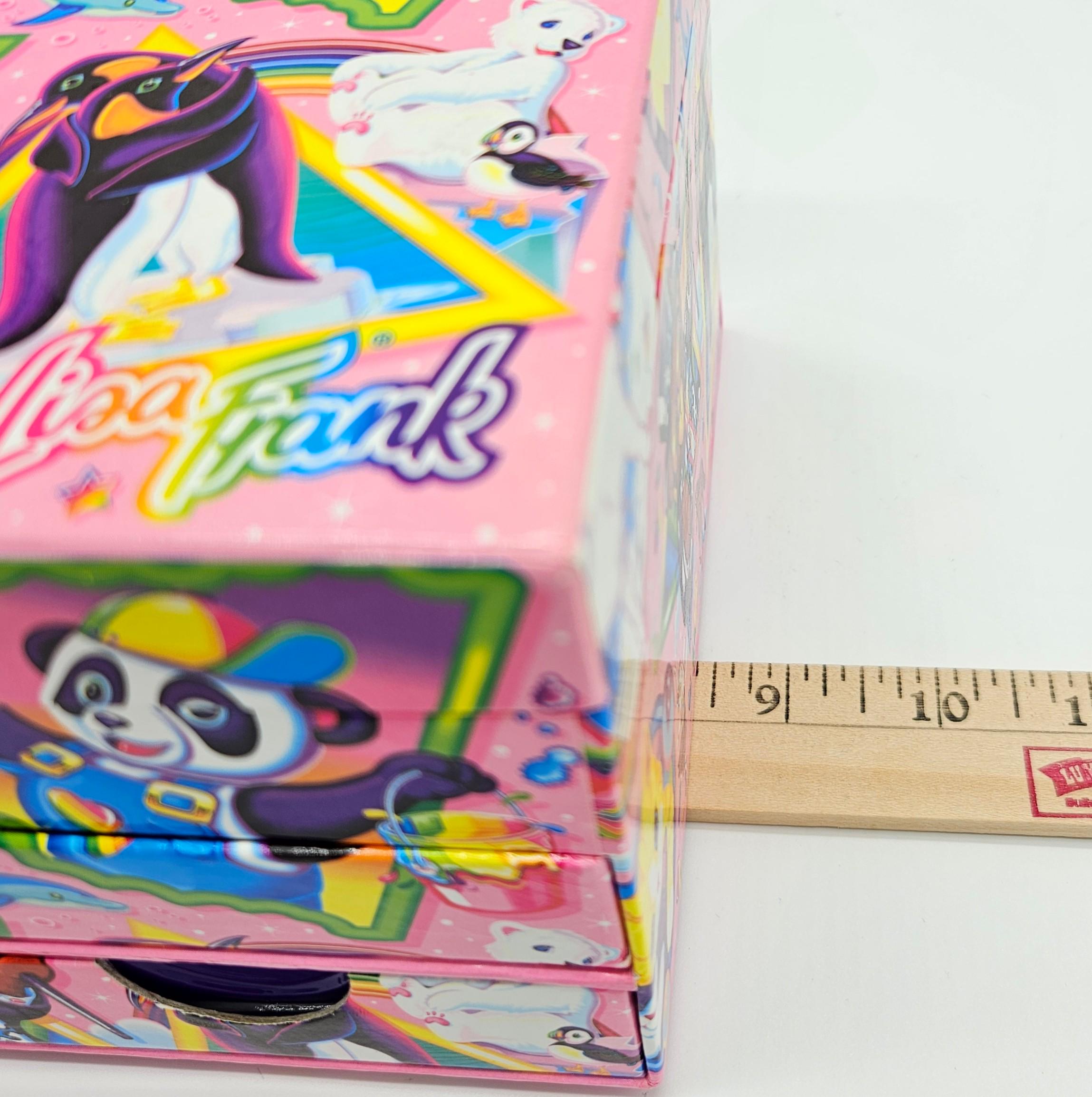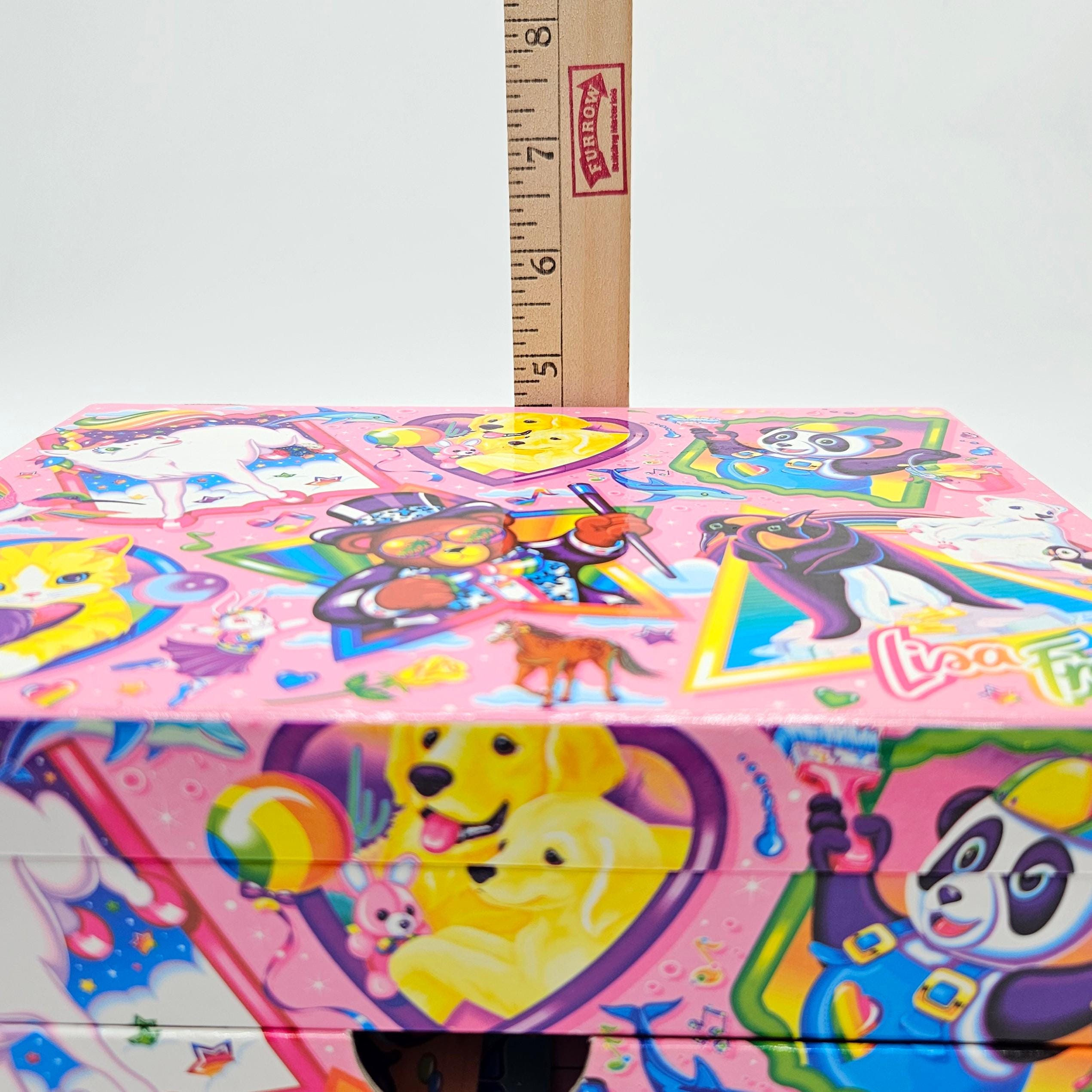 Step straight back into the 1990s with this vintage Lisa Frank stationery box, featuring a vibrant multi-character collage design with iconic favorites including Panda Painter, Markie the Bear, unicorns, kittens, penguins and more. This artwork was used on select Lisa Frank storage boxes and is rarely seen outside of these pieces.