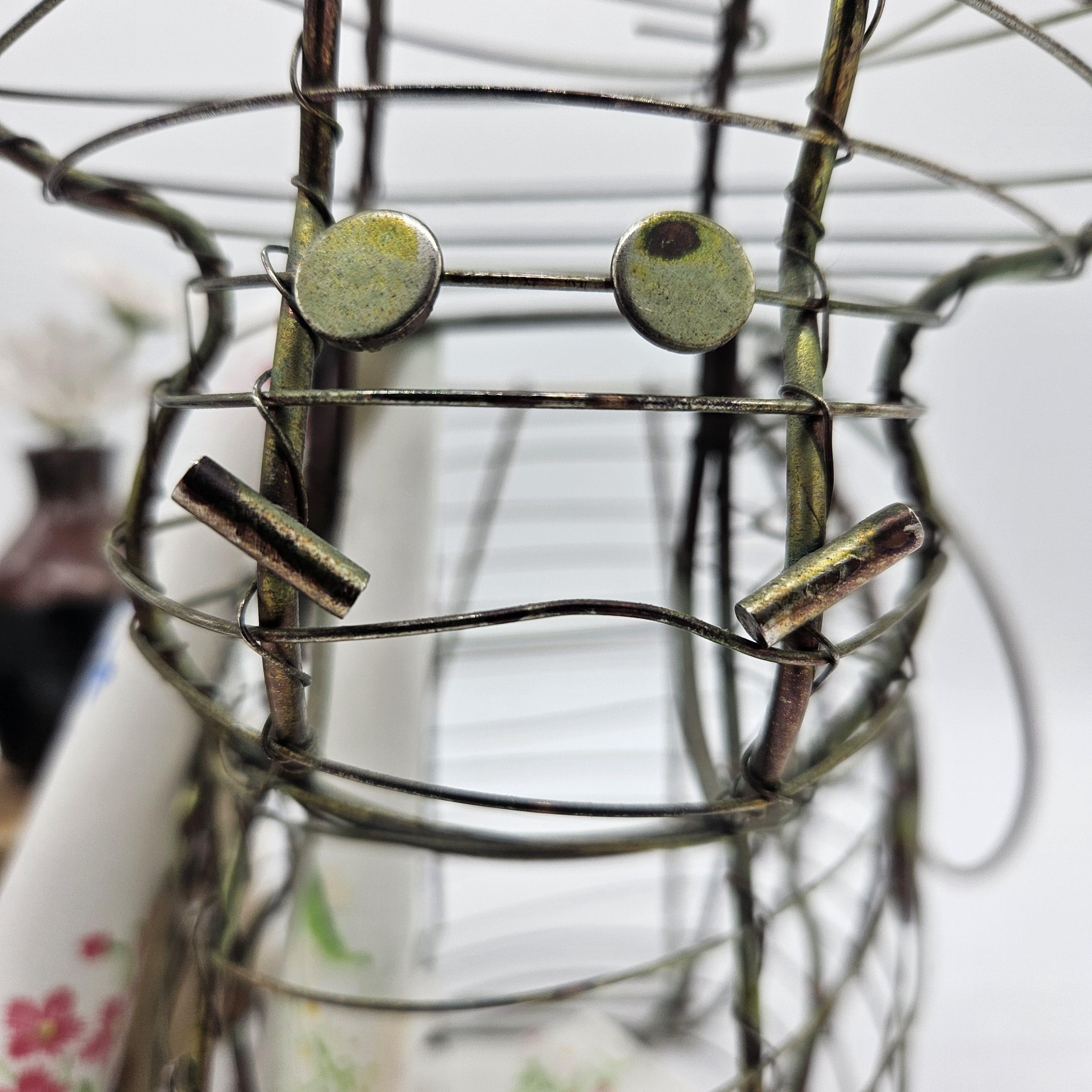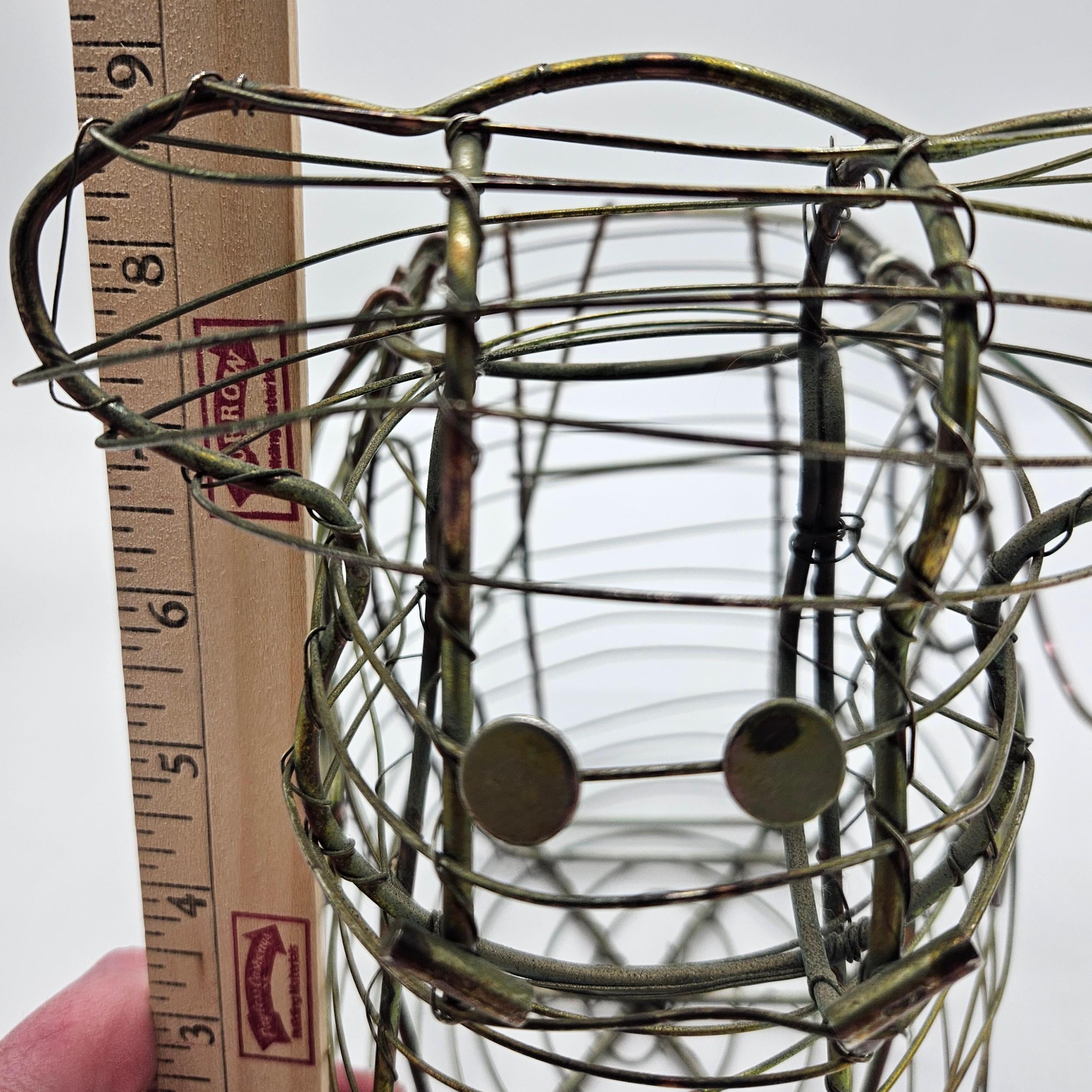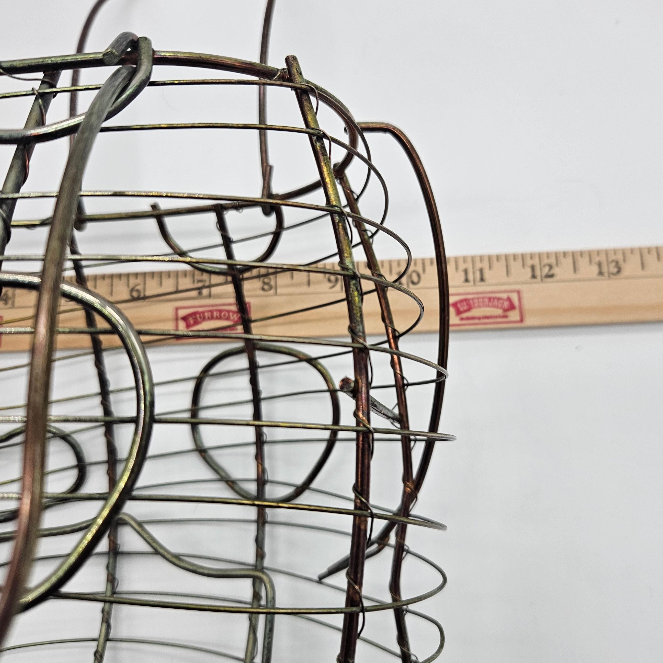 Good pre-owned vintage condition. Visible patina and discoloration consistent with age. Some minor bends/irregularities in wire (part of handmade charm) and it leans a little lopsided (could be fixed easily).