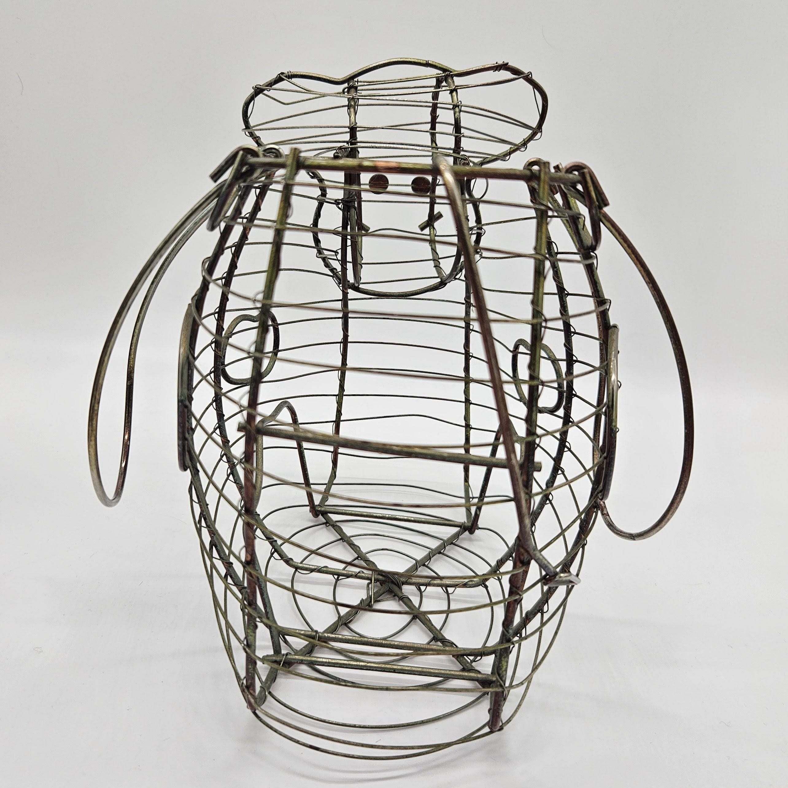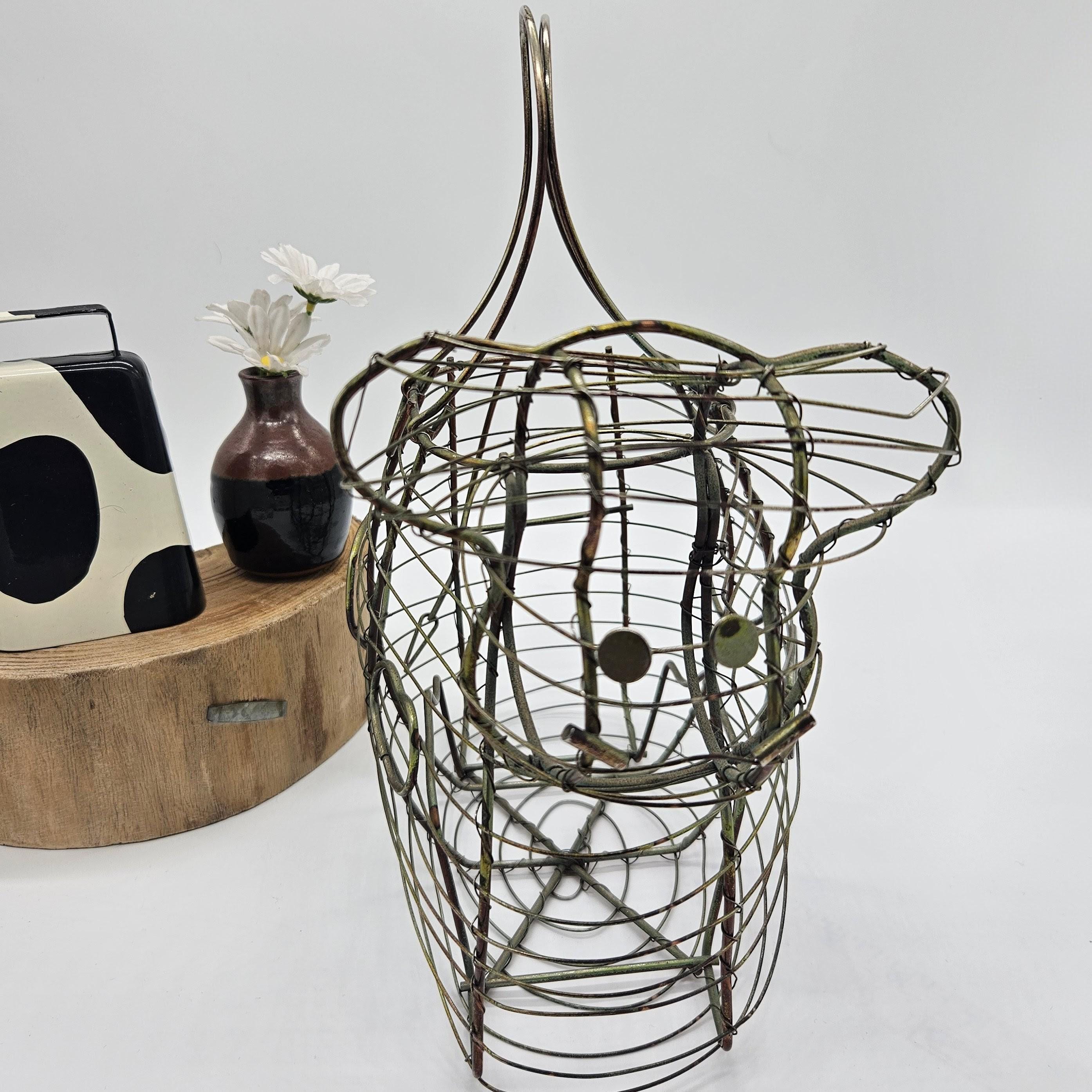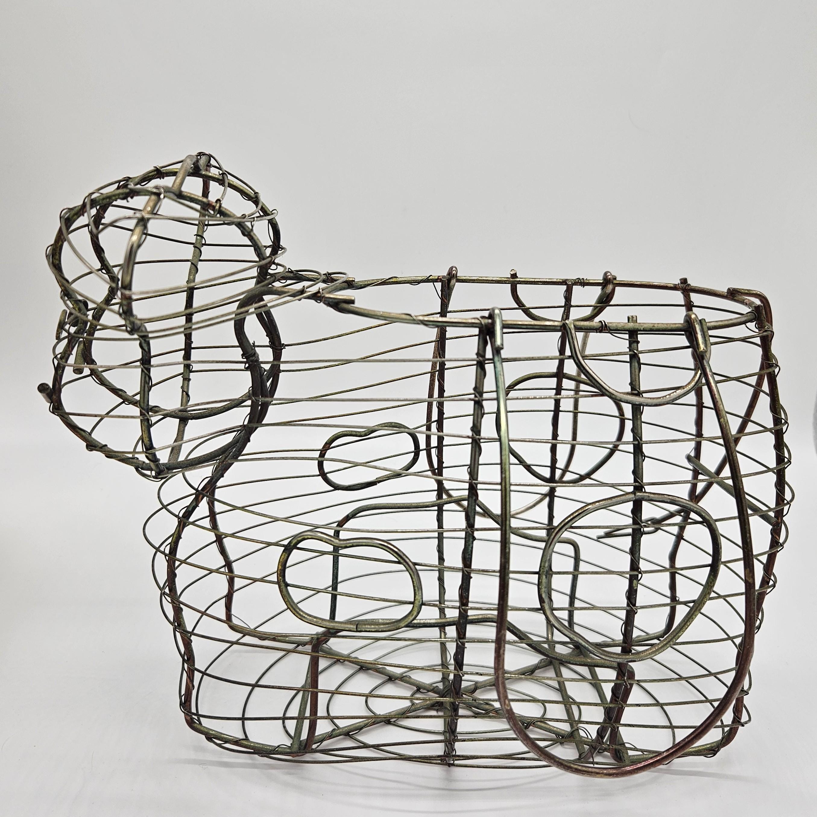 Good pre-owned vintage condition. Visible patina and discoloration consistent with age. Some minor bends/irregularities in wire (part of handmade charm) and it leans a little lopsided (could be fixed easily).