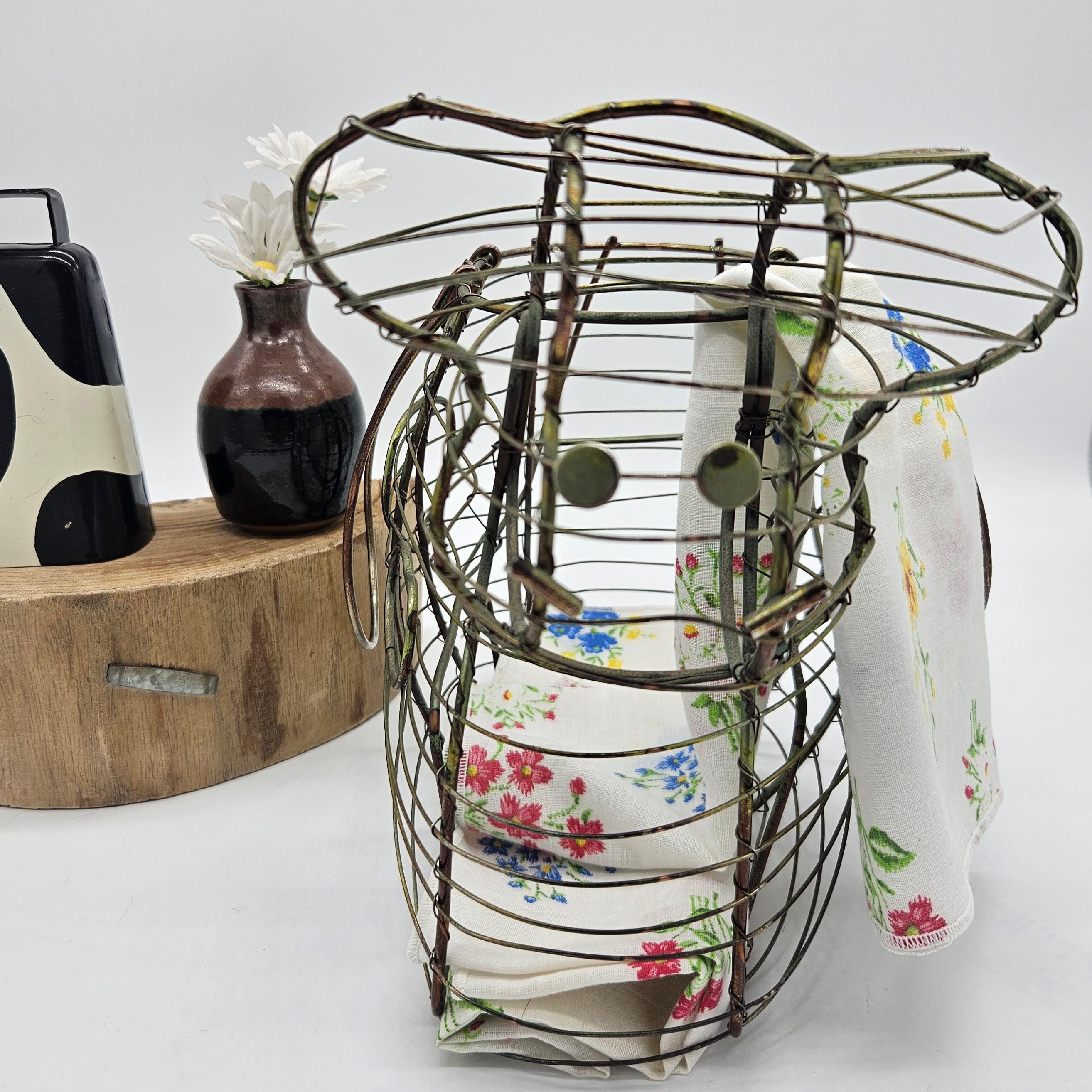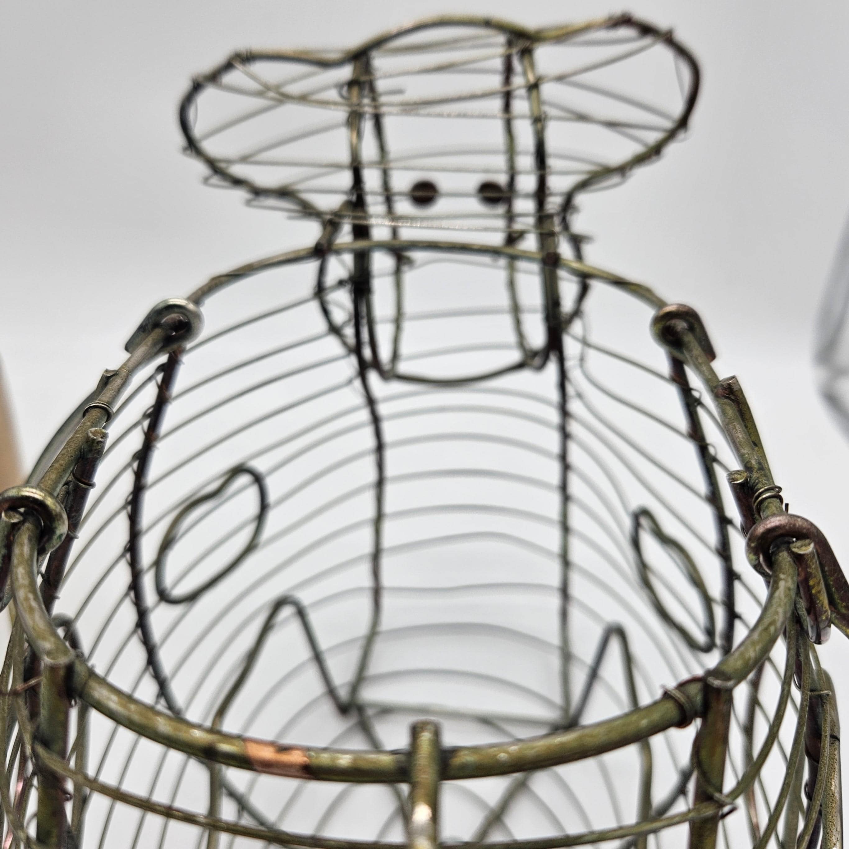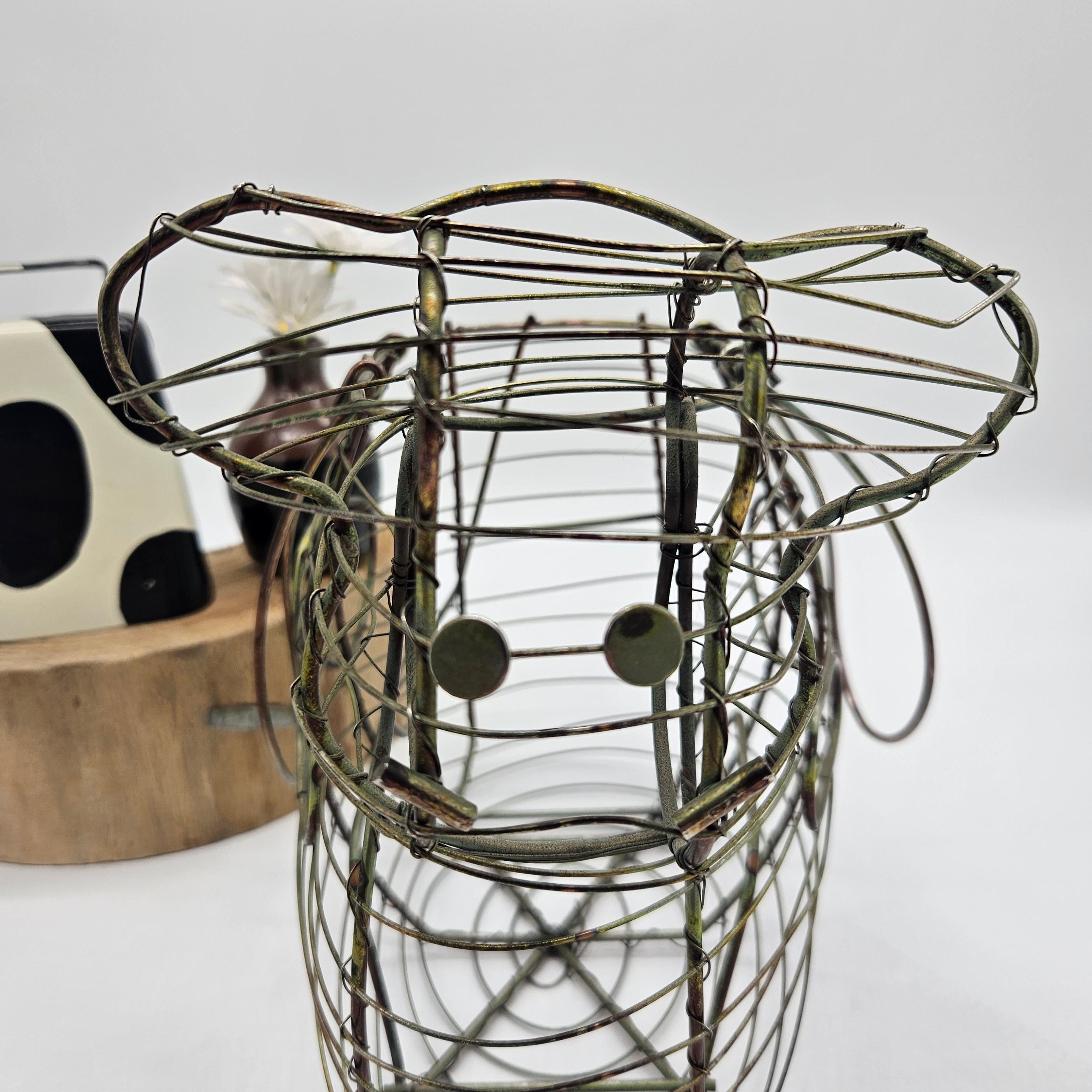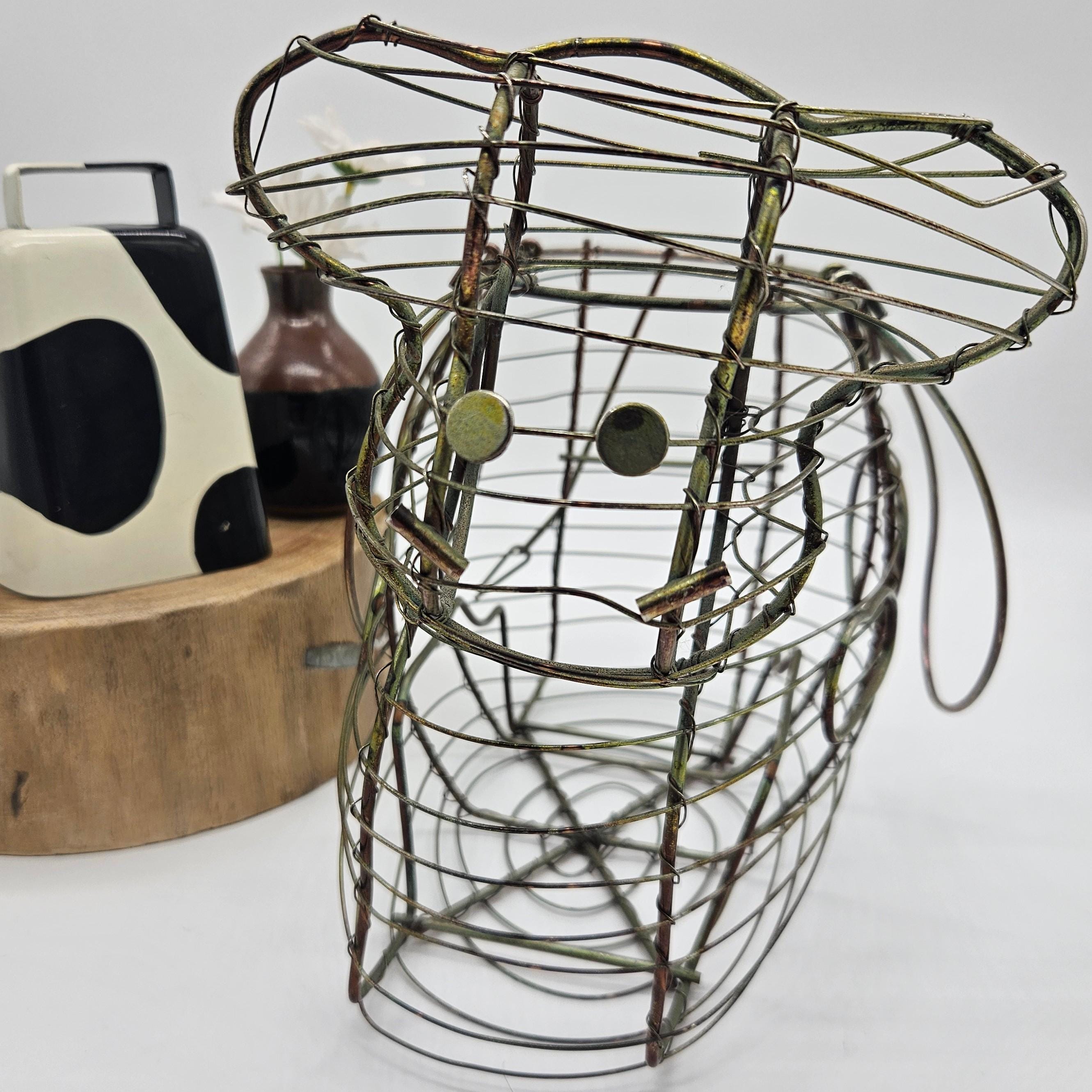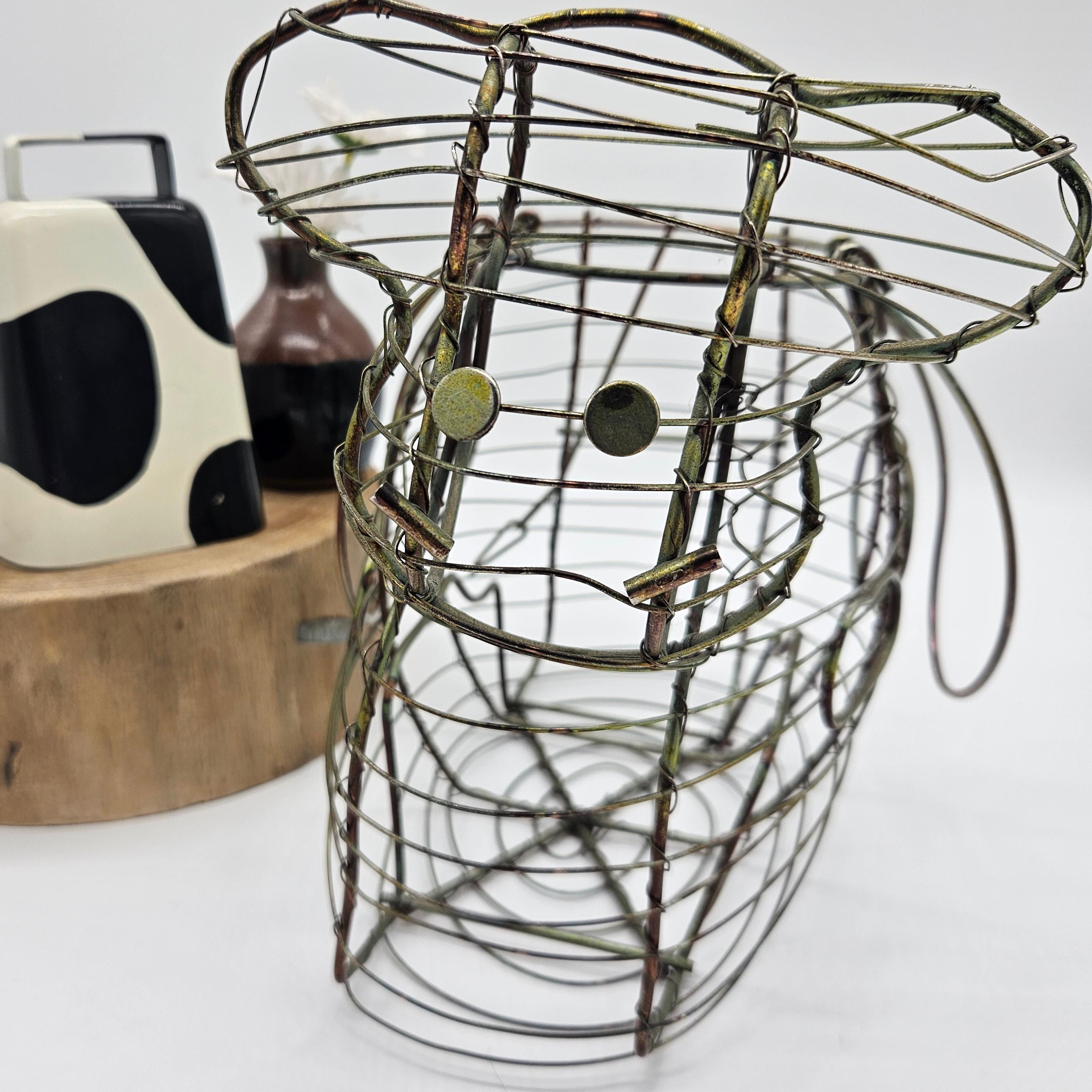 This vintage wire cow basket or bottle holder has a charming, whimsical farmhouse design. This piece works beautifully as a napkin holder, small storage basket, bottle holder, or simply as a fun decor accent. The hand-formed wire gives it that classic folk art feel... imperfect in the best way, with lots of character.